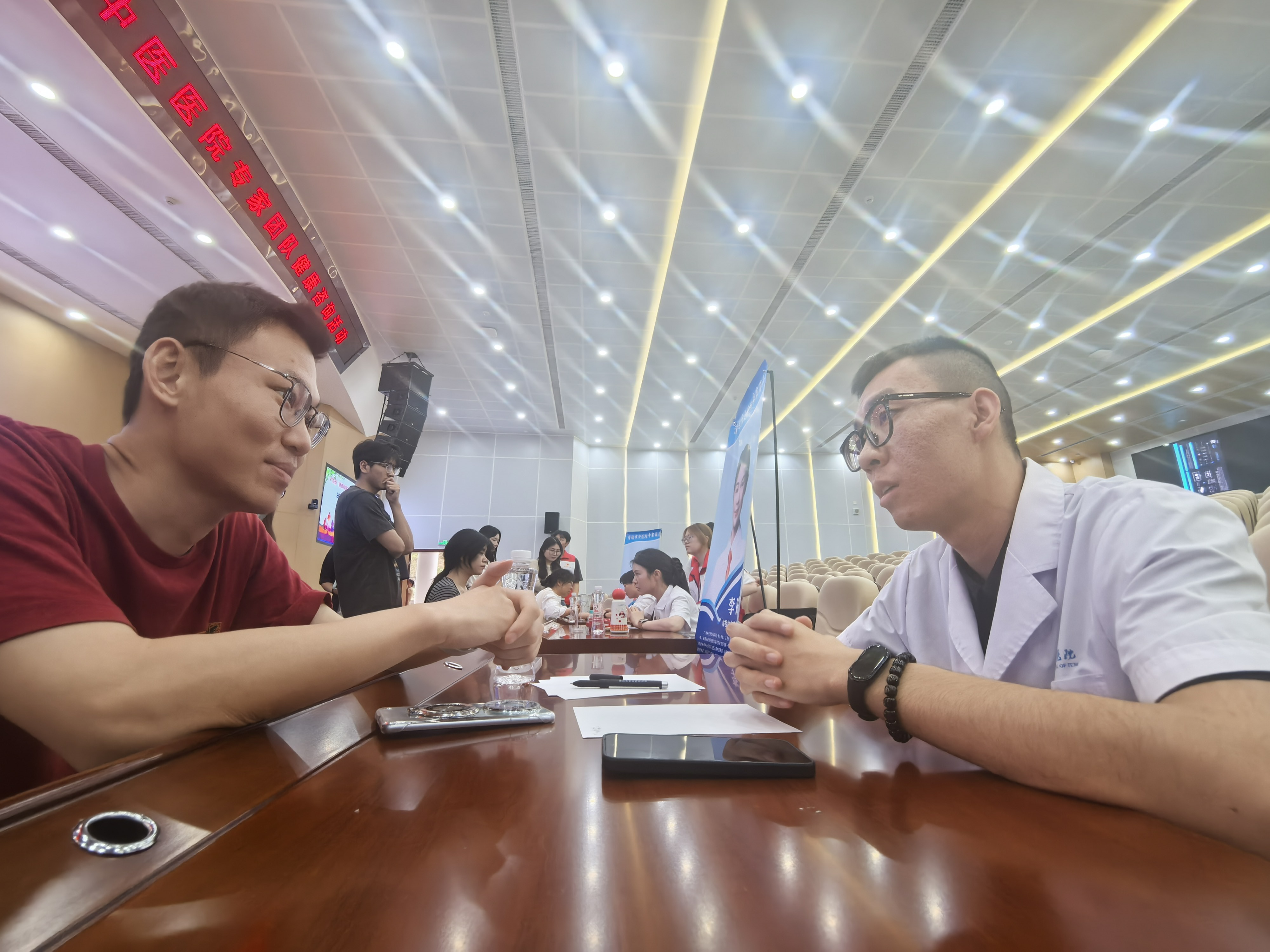 长期伏案办公、低头学习引发的颈椎不适、肩颈劳损,是师生们的高频“通病”。大会堂内,中医专家带来干货满满的专题讲座,现场拆解问题根源,手把手教授简易推拿、自我放松手法,台下师生认真聆听、跟着比划,实用技能一学就会。大家边听、边问、边体验、边学习,在轻松热闹的氛围里,把健康知识“装进口袋”,把中医关怀“带回身边”。