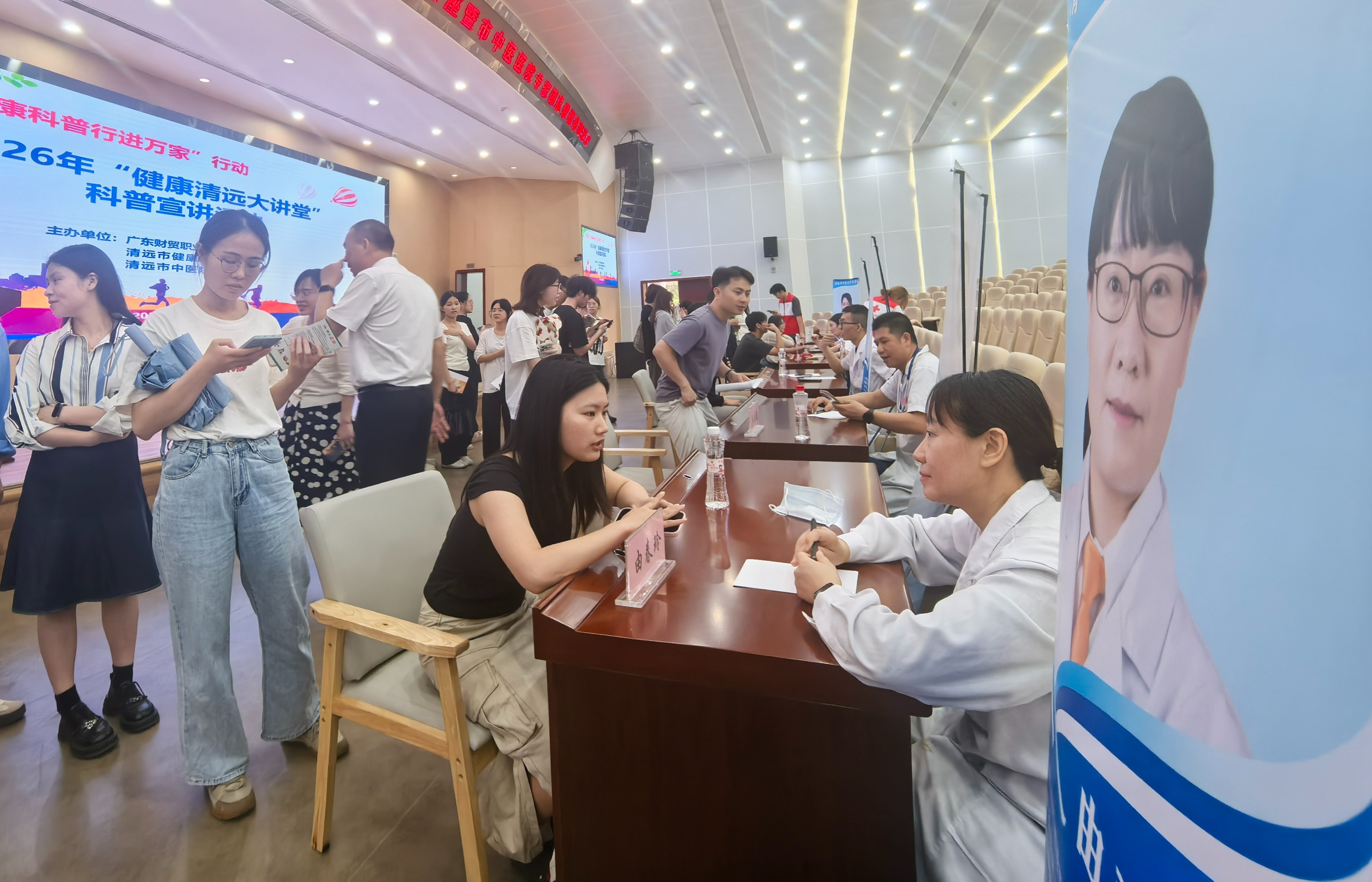 4月15日,广东财贸职业学院清远校区15栋大会堂人气爆棚、温情满满,“健康清远大讲堂走进财贸学院”专题讲座暨市中医院专家团队健康咨询活动在这里火热开展。该校联合清远市健康教育中心、清远市中医院,把专业中医健康服务直接“搬”进校门,为全校师生送上一场看得见、摸得着、体验得到的健康盛宴。
