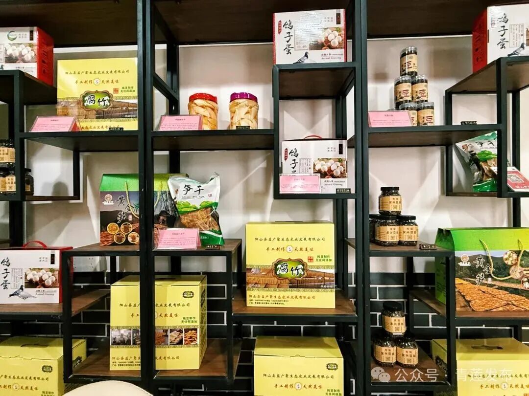 农特产品展示区犹如微型“青莲优品”博览会。鸽子蛋、蓝山金笋、腐竹、豆豉等农副产品包装精美、品质值得信赖,一站式购物体验方便又安全。