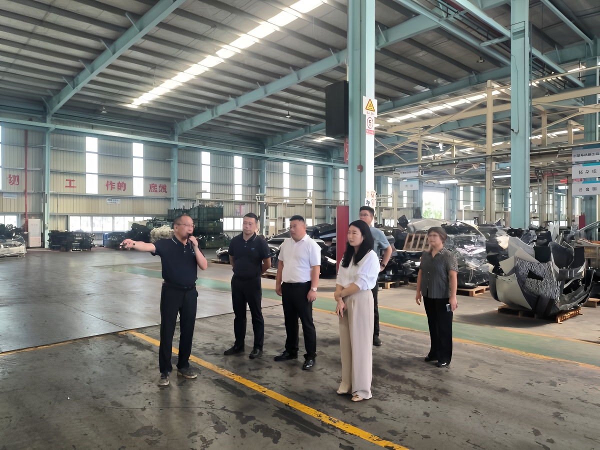 考察组先到优湃能源科技(广州)有限公司参观考察,依次参观了预处理车间、小车拆解车间、新能源拆解车间、总成拆解流程、电池仓储、废钢打包等功能区域及电池梯次利用项目、广州市“无废城市”建设示范项目,详细了解了企业在能源科技领域的生产工艺、核心技术以及创新成果,包括其在电池制造、矿产及电池原材料、再生能源运营等方面的独特技术与实践成果。