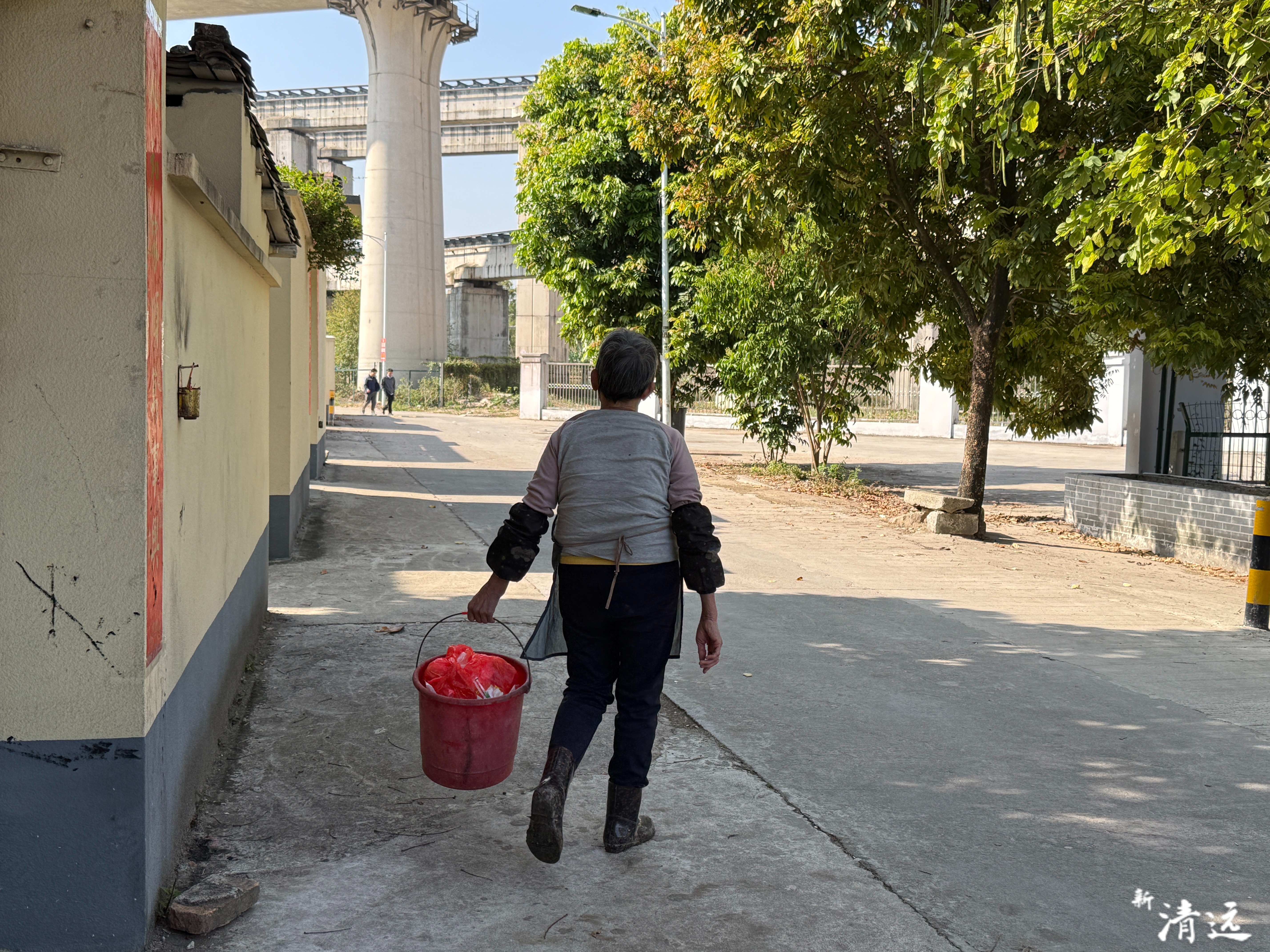 村民自发清理门前杂物。