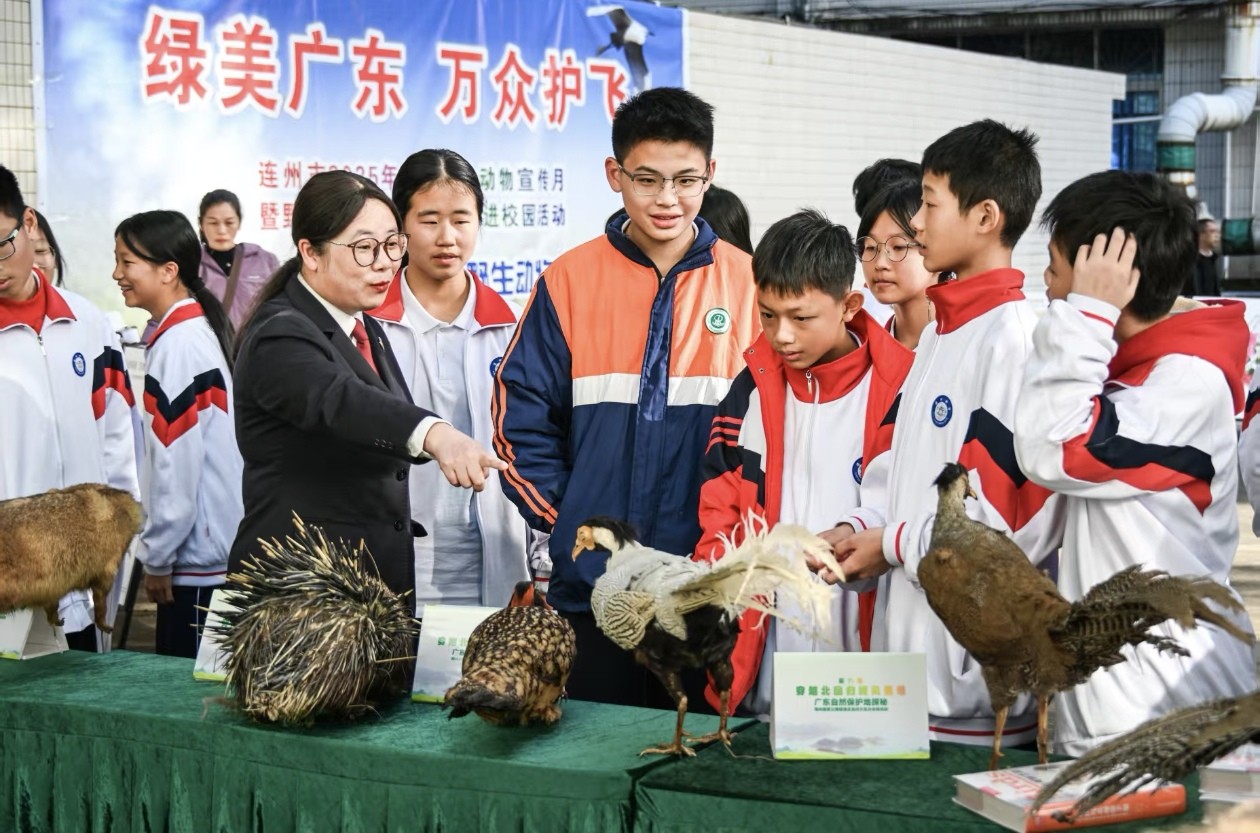 活动负责人表示,野生动物是生态系统的“活棋子”,候鸟迁徙更是生态环境质量的“晴雨表”,但受栖息地破坏、非法猎捕交易、气候变化等影响,其生存面临挑战。而青少年作为未来生态保护的主力军,对本土物种、保护法规的认知仍有盲区,此次连州多部门打破壁垒、整合资源,主动走进校园,通过“沉浸式展览+案例化普法+专业化讲解”模式,将野生动物保护知识从“书本”搬到“眼前”,推动形成“青少年带动家庭、家庭影响社会”的生态保护链条。