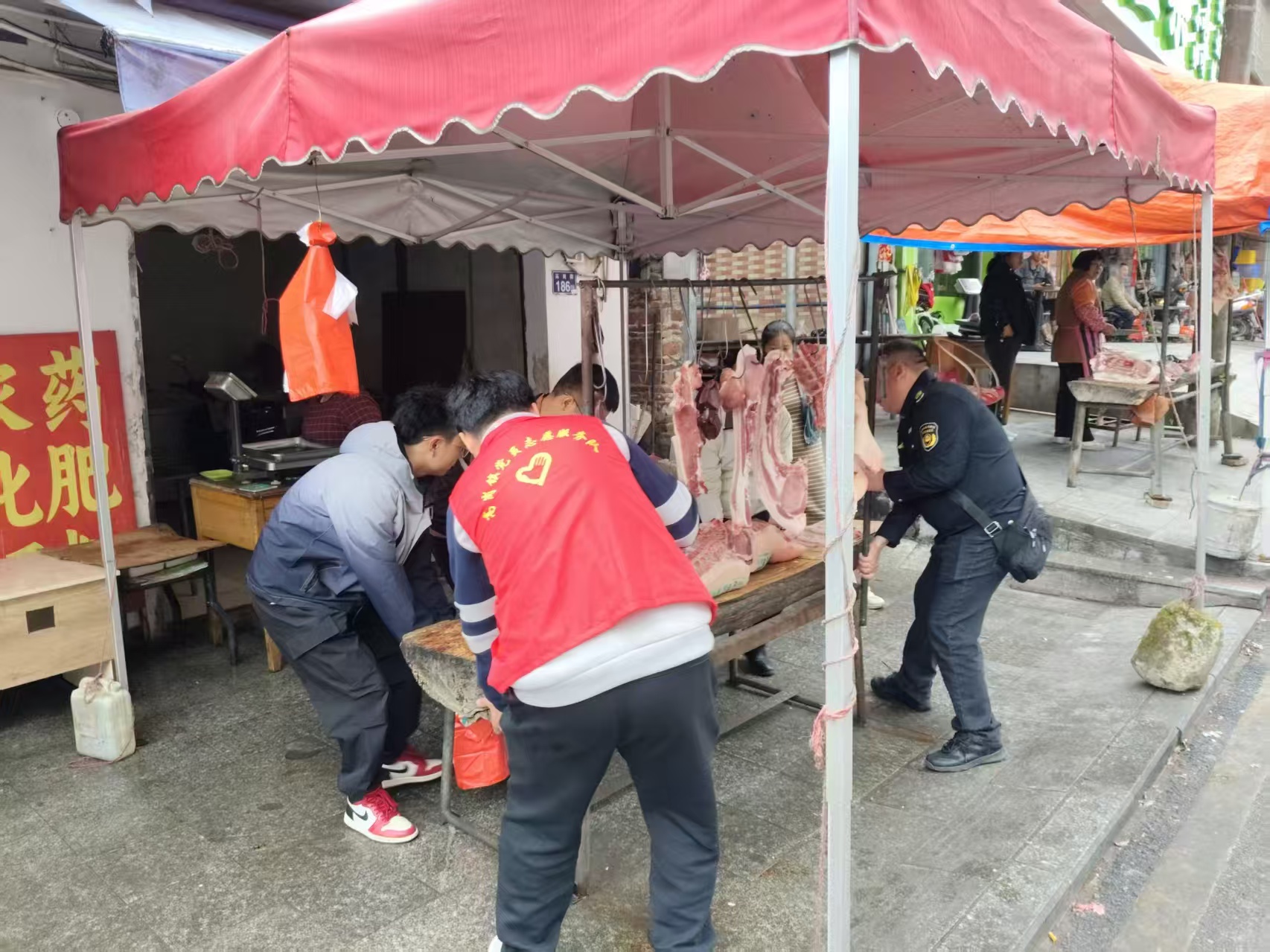 “红帆”临时党支部成员开展圩镇“六乱”整治工作。通讯员供图