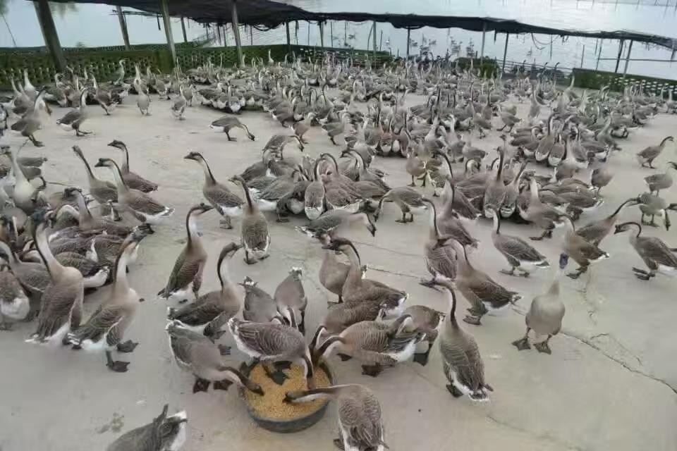 另一方面,下岳村创新发展“鹅”产业,培育乡村特色IP。依托本地生态优势,下岳村成立佛冈县安民鹅业发展专业合作社,投入200万元打造“乌鬃鹅+牛大力鹅”特色养殖模式,走出一条“中药材养殖+品牌化运营”的增收路。乌鬃鹅肉质鲜美,是广东地理标志产品。牛大力鹅以中药材“牛大力”喂养,提升鹅肉营养价值与附加值。合作社深耕行业8年,研发专属饲料配方,建立6个养殖+孵化基地,种鹅存栏超8000只,年出栏20万只,带动周边60余户村民参与养殖。