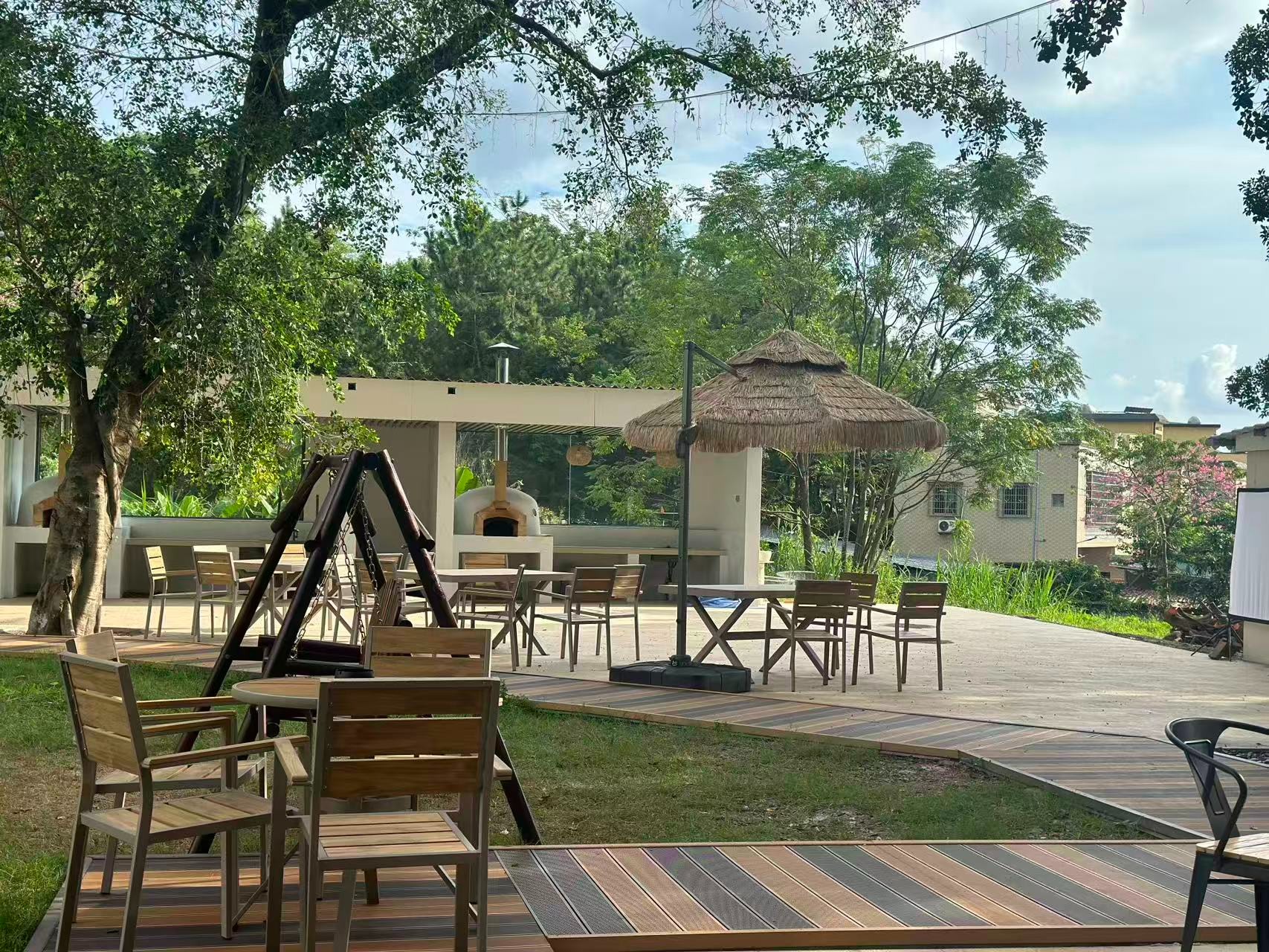 围绕“渔游下岳·自在桑田”主题,下岳村打造系列特色文旅节点,其中“千塘窑休闲餐厅”成为乡村文旅“新地标”。千塘窑以岭南传统文化为基底,融入现代休闲美学,打造“庭院+体验”场景——游客可在绿荫环绕的庭院里品尝窑烤面包、现磨乡村咖啡,感受土窑果柴火的麦香与咖啡香气的交融。