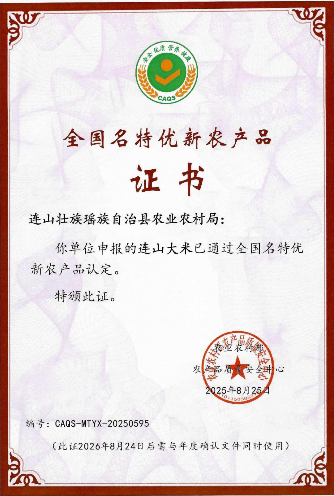 近日,农业农村部农产品质量安全中心正式公告,“连山大米”与“连山肉鸽”分别纳入2025年第二、三批全国名特优新农产品名录。这是继“连山大米”获评国家地理标志保护产品、“连山高山茶”“连山春桔”“连山沃柑”荣获全国名特优新农产品之后,连山特色优质农产品再次获得的国家级权威认可。