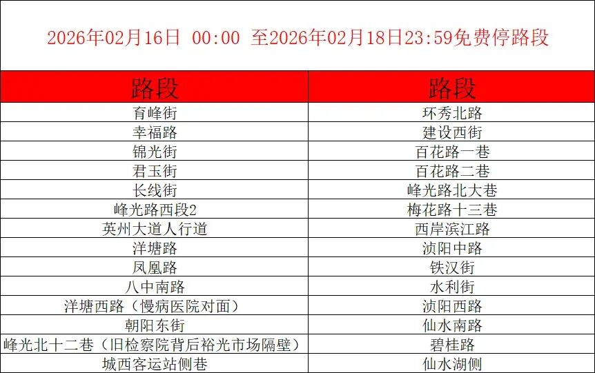 行政机关内部停车场(开放时间:2月15日至2月23日全天;停放车型:小型汽车)