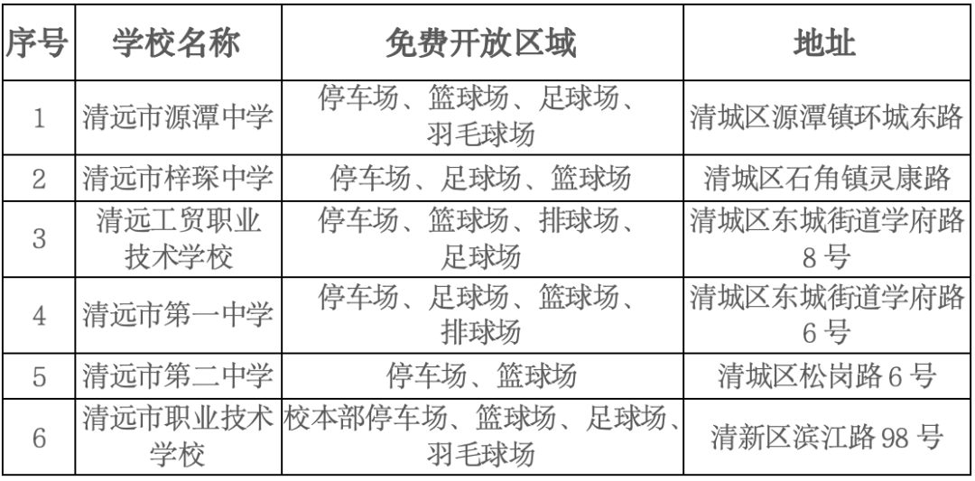 开放学校及区域