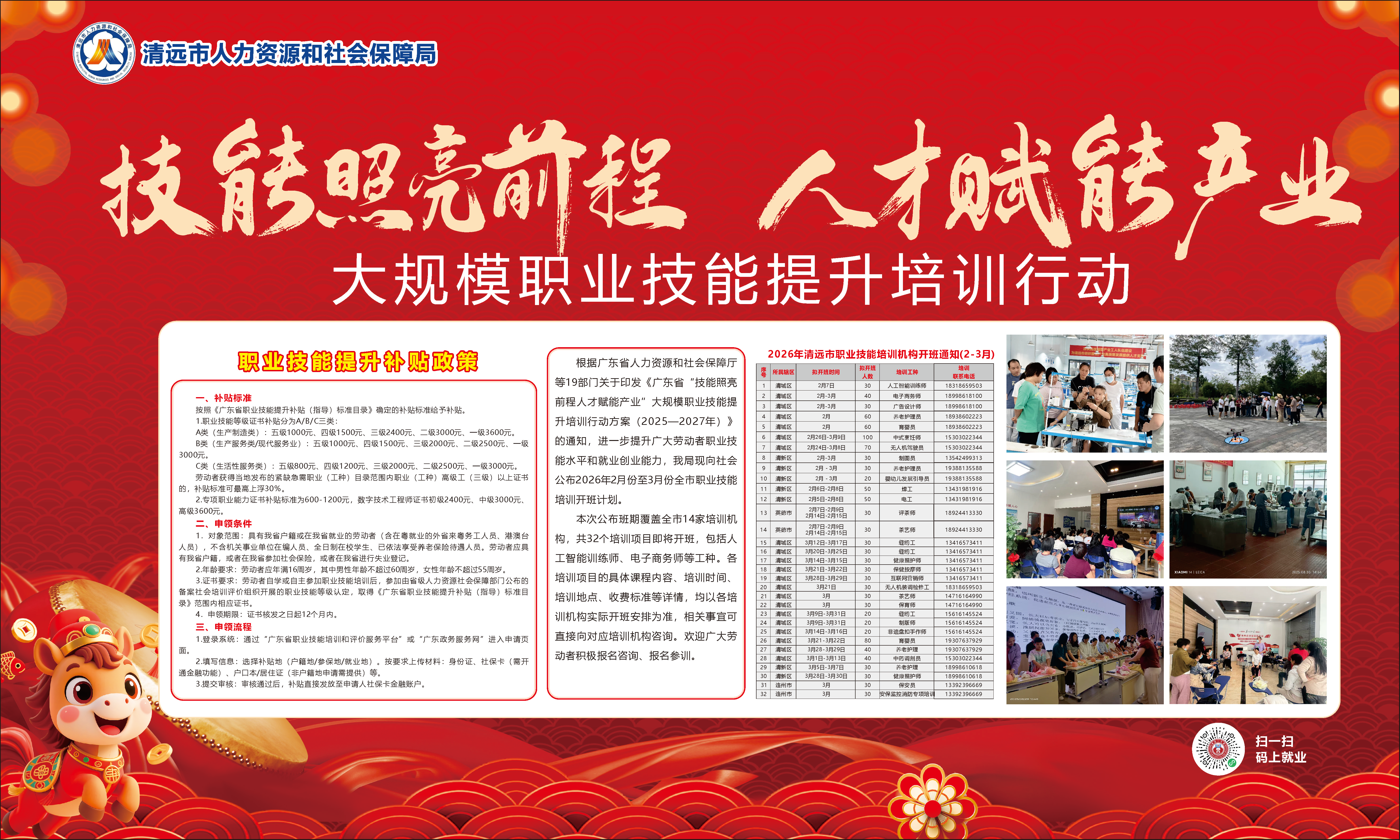 为进一步提升广大劳动者职业技能水平和就业创业能力,招聘会设置职业技能展示区,并公布2026年2月至3月全市职业技能培训开班计划。