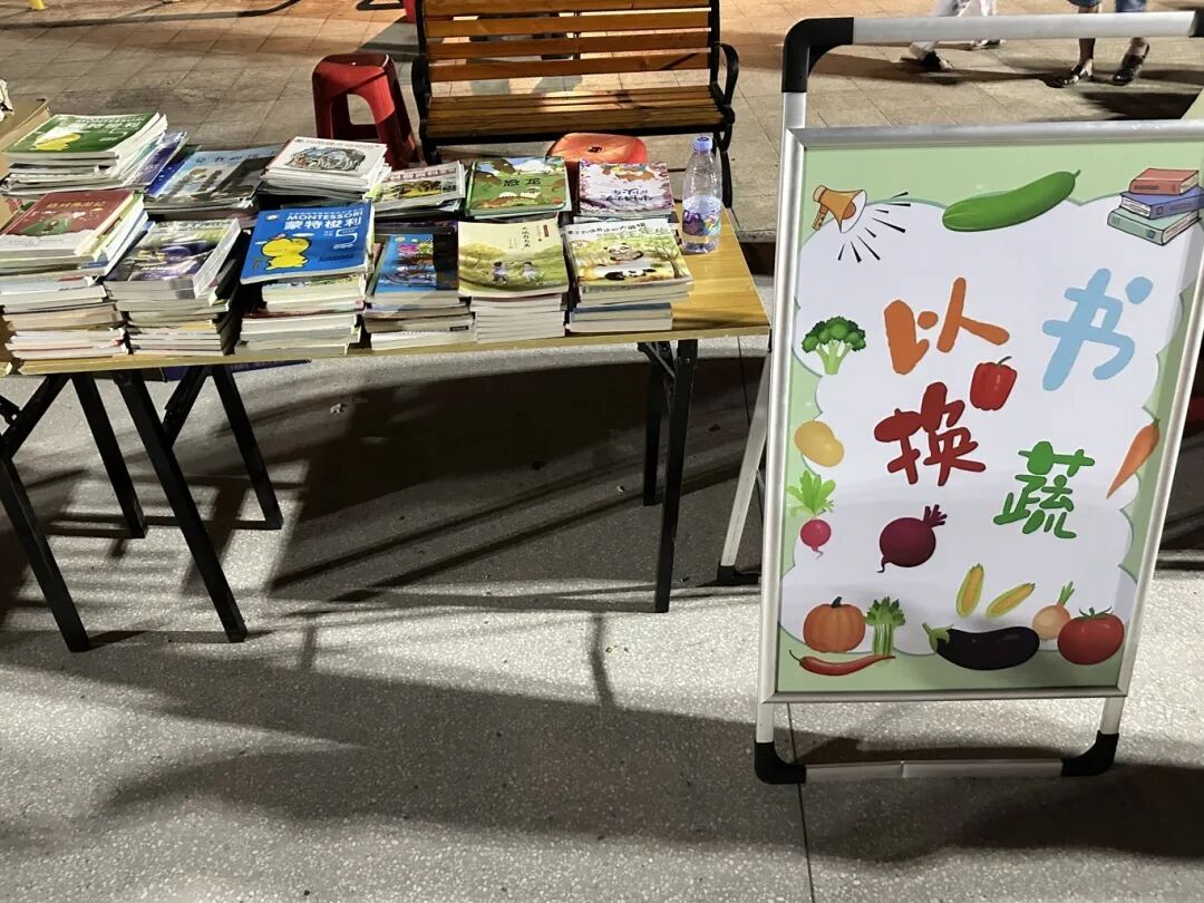 “以书换蔬”区刚刚布置完成,便迎来络绎不绝的人流。居民们携闲置书籍兑换自己喜欢的蔬菜,让知识随蔬菜传递、祝福借绿书签延续——小朋友们认真写下寄语,夹入书中,让祝福随纸页远航。不到两小时,百余份蔬菜礼包已被兑换一空,回收书籍近200本。所有图书将存放于芙蓉路城市文化空间共享书角,持续漂流、供人免费取阅。不少家长感叹:“既清空了书架,也让孩子懂了分享的意义!”