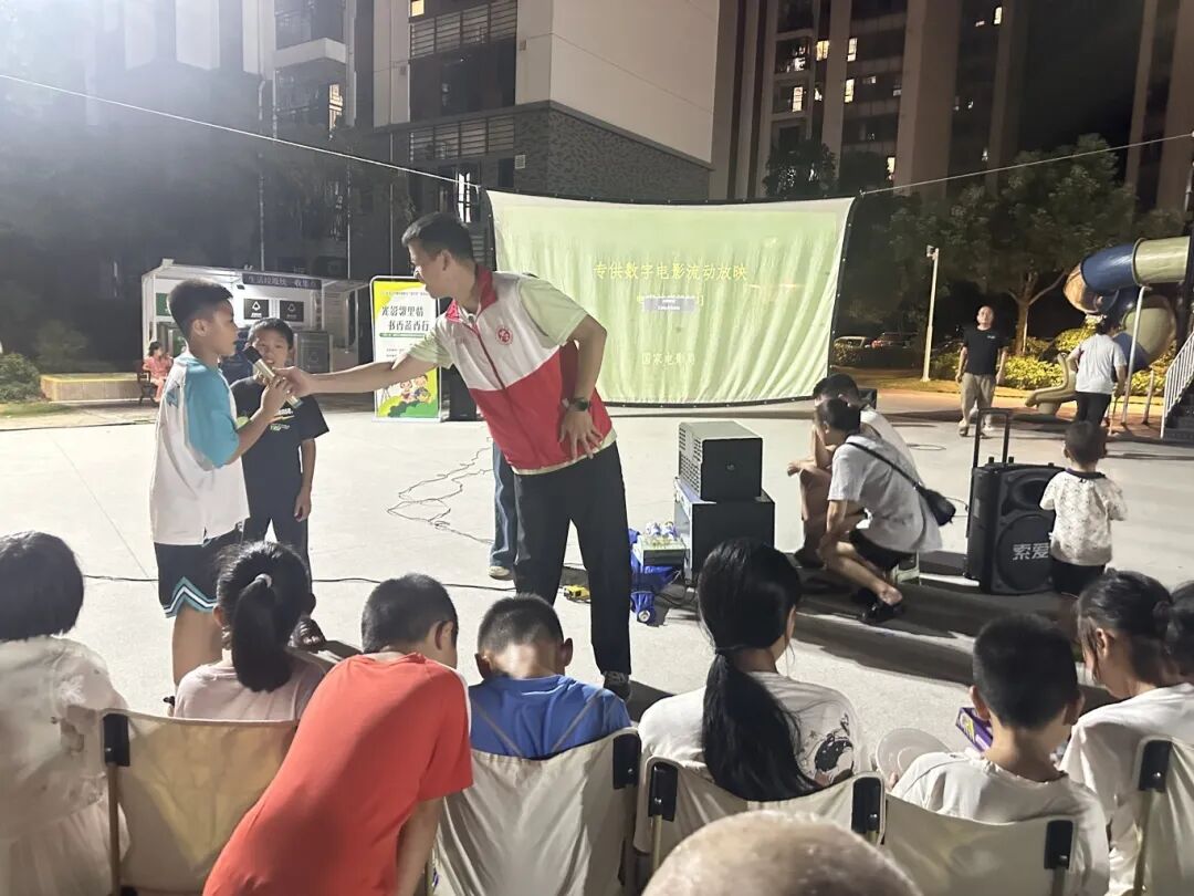 夜幕降临,居民们有序就坐,一同欣赏影片《深山狙击》。电影放映前,穿插了网络安全与文明观影互动问答,“如何设置强密码?”“观影时哪些行为不文明?”小朋友们踊跃举手,在欢乐中学到实用知识。这场电影不仅为居民带来视觉享受,更在轻松氛围中传递了知识与文明,成为邻里交流的美好契机,让社区氛围更加和谐融洽。