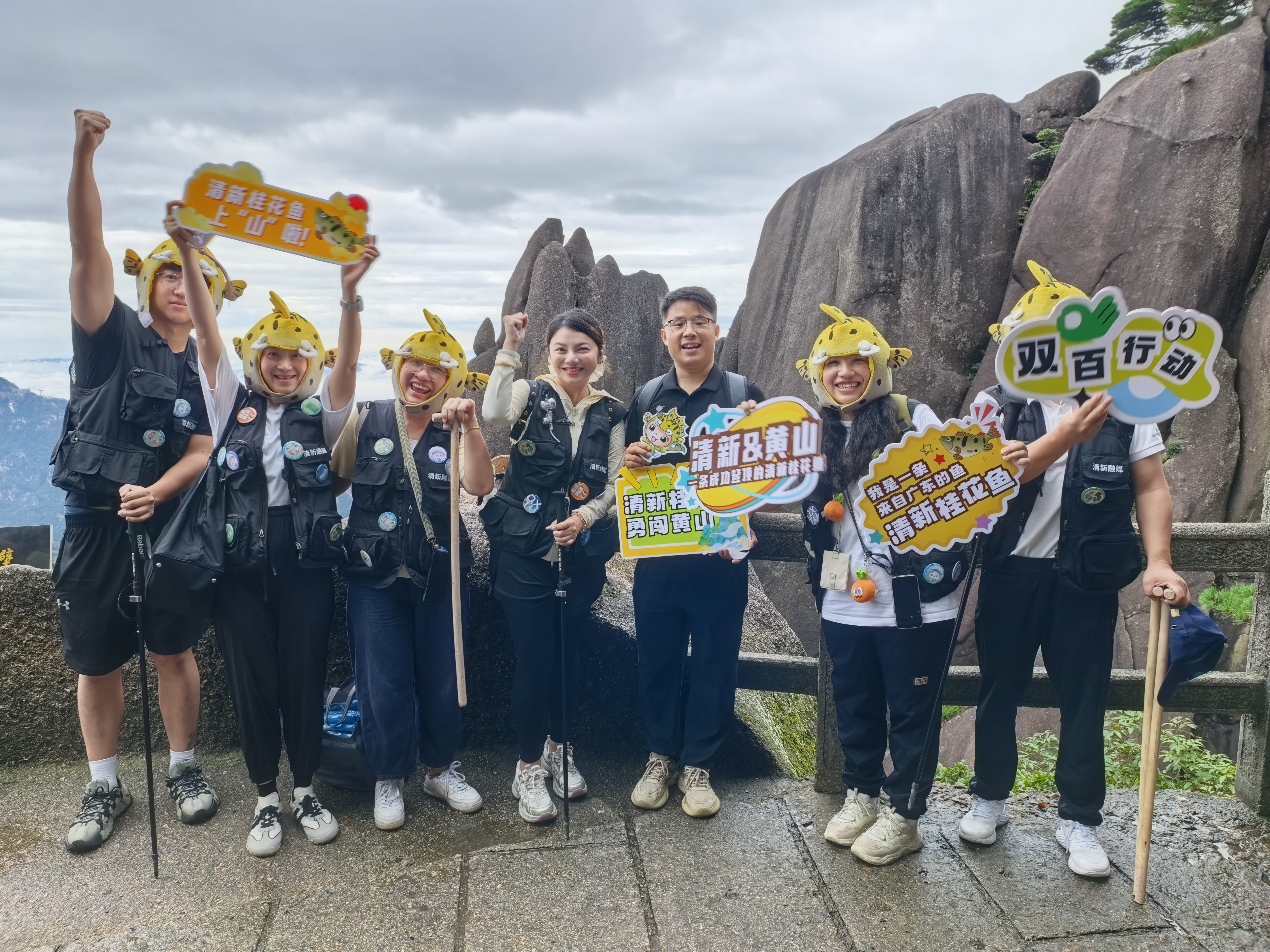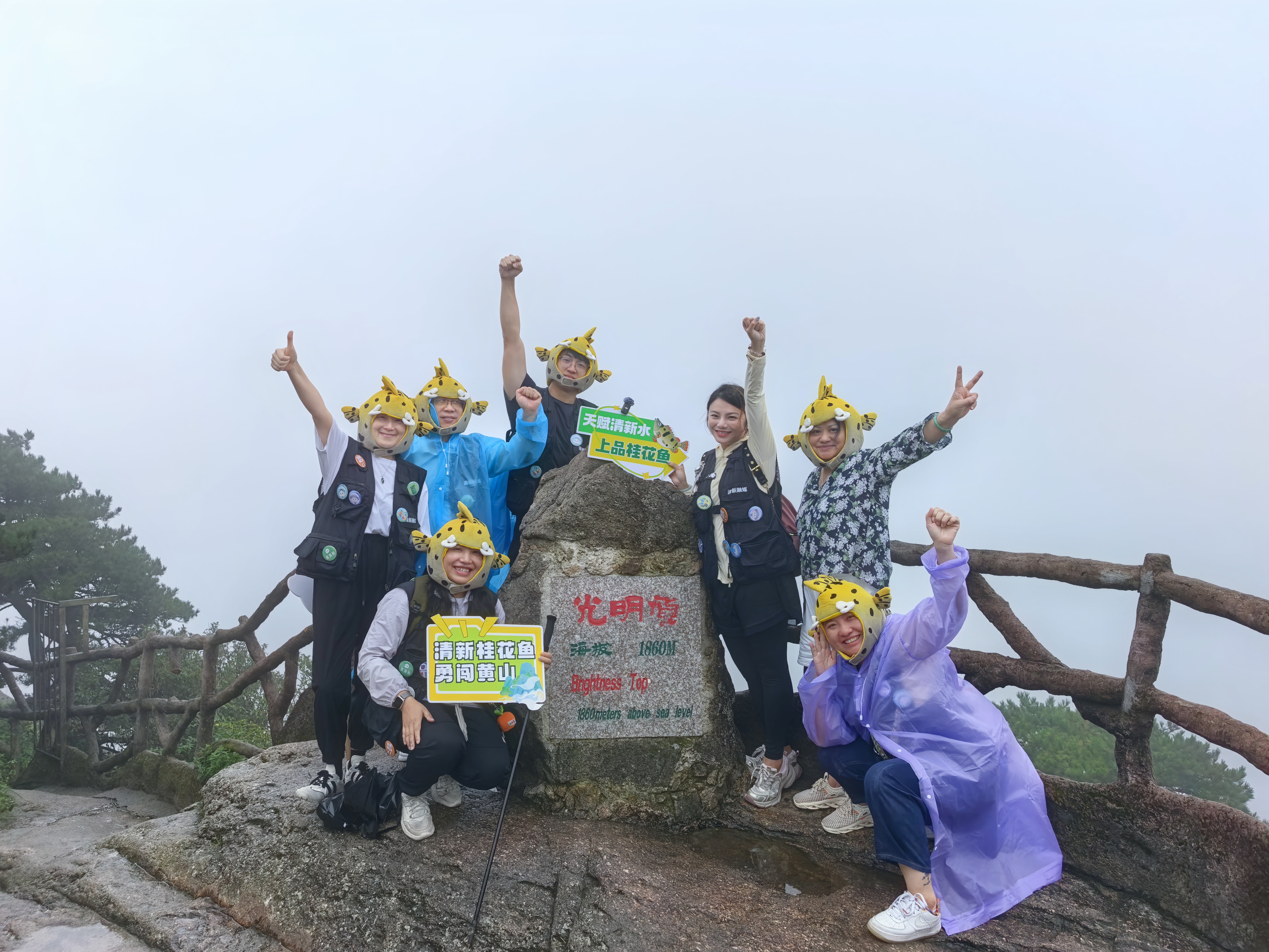 7名工作人员化身萌趣的“桂花鱼”形象,沿安徽黄山经典登山路线展开“鲜味征程”。