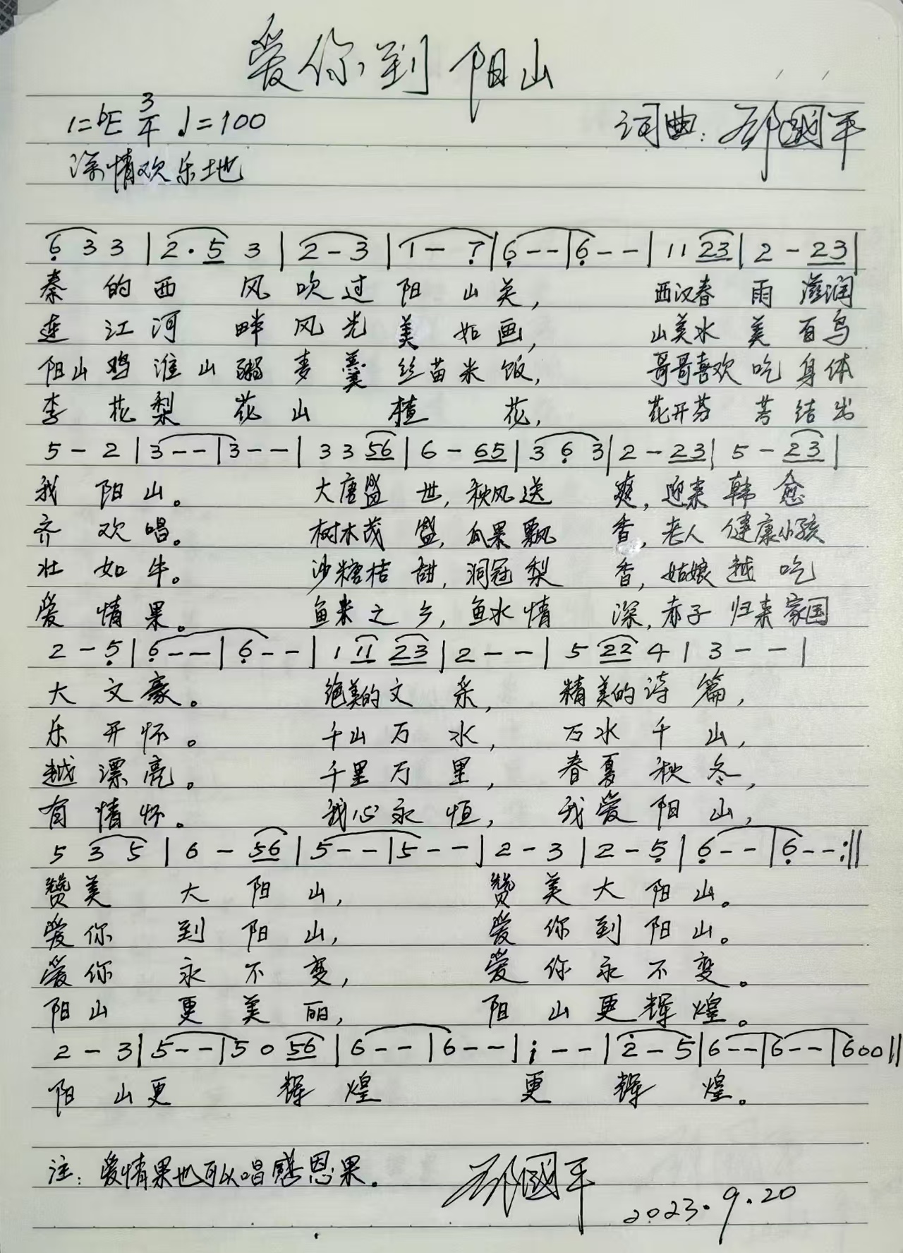 《爱你到阳山》的创作者邓国平,毕业于星海音乐学院和中央音乐学院,从事音乐创作三十余年,是中国音乐家协会会员、中国音乐著作权协会会员。