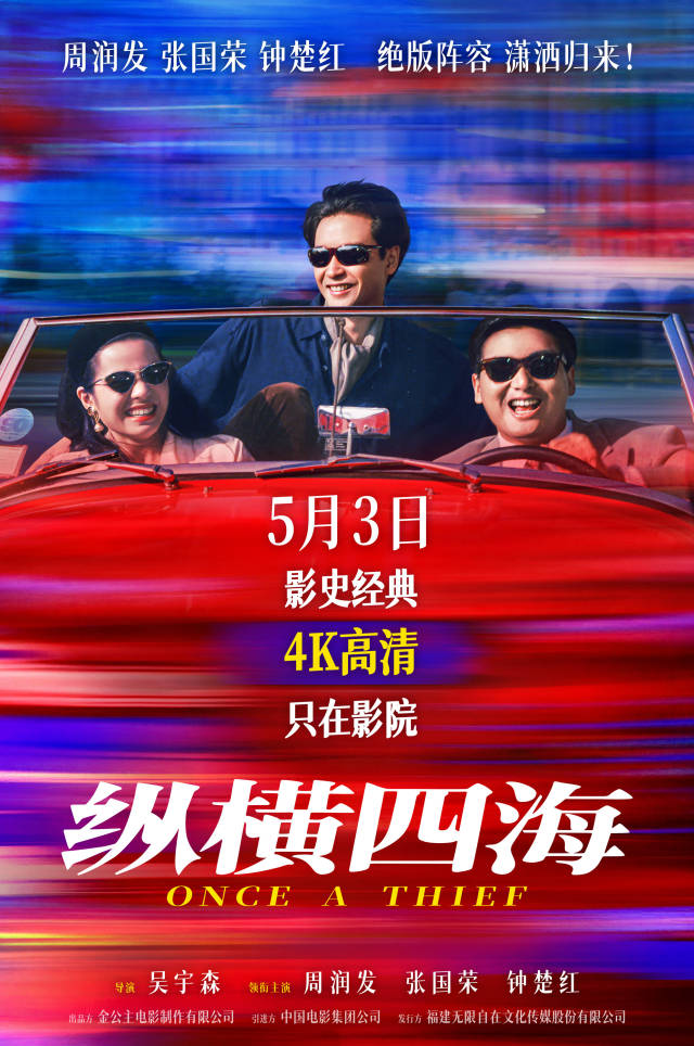 5月3日,由吴宇森执导,周润发、张国荣、钟楚红主演的《纵横四海》4K高清修复版,将首度在内地公映。这是这部电影自1991年问世以来,第一次正式登上内地大银幕。