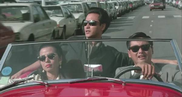 塞纳河畔的飞车——三人开着红色敞篷跑车在巴黎街头兜风,风把红豆的头发吹起来。那是青春最美好的样子。许多影迷说,那是“港片黄金年代最动人的画面”。