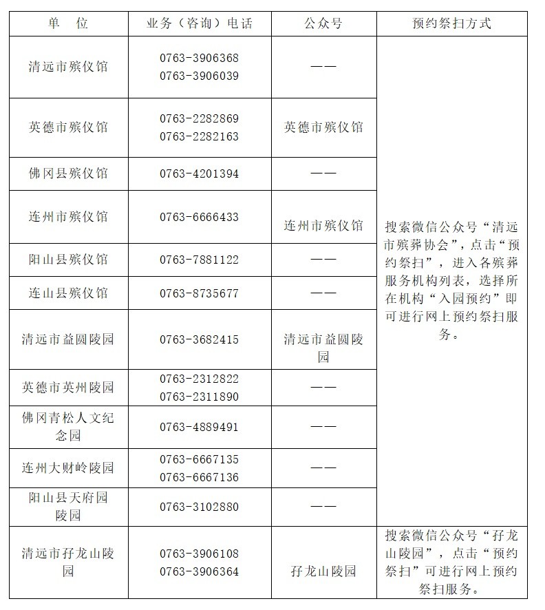 相关链接:全市殡仪馆、经营性公墓业务电话及预约祭扫方式