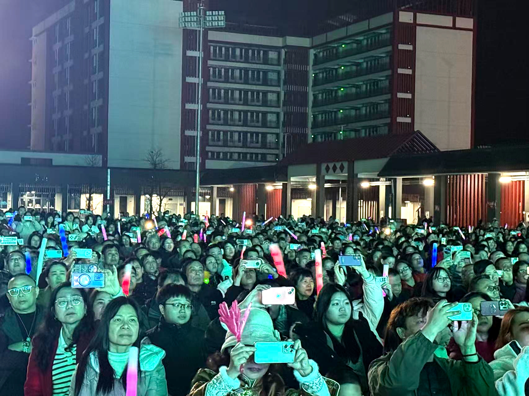 晚会的压轴环节,华语乐坛经典歌手邰正宵的登场,将氛围推向顶峰。《心要让你听见》《千纸鹤》《九百九十九朵玫瑰》《一千零一夜》四首经典曲目接连唱响,熟悉的旋律唤起全场集体回忆。观众们挥舞着手机灯光,跟着歌手合唱,随着旋律摇摆。“从小听到大的歌,能在家门口现场听到,这日子也是越来越好了。”带着孩子来现场的市民张颖说。