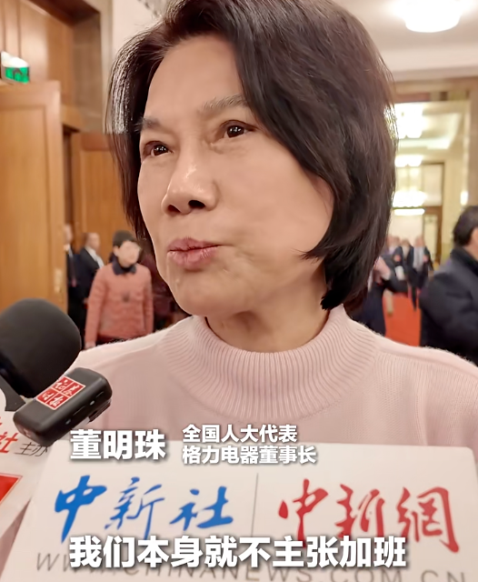全国人大代表董明珠在接受采访时表示,不主张加班。她指出,随着智能化的发展,许多简单粗重的劳动已经被机器解放。