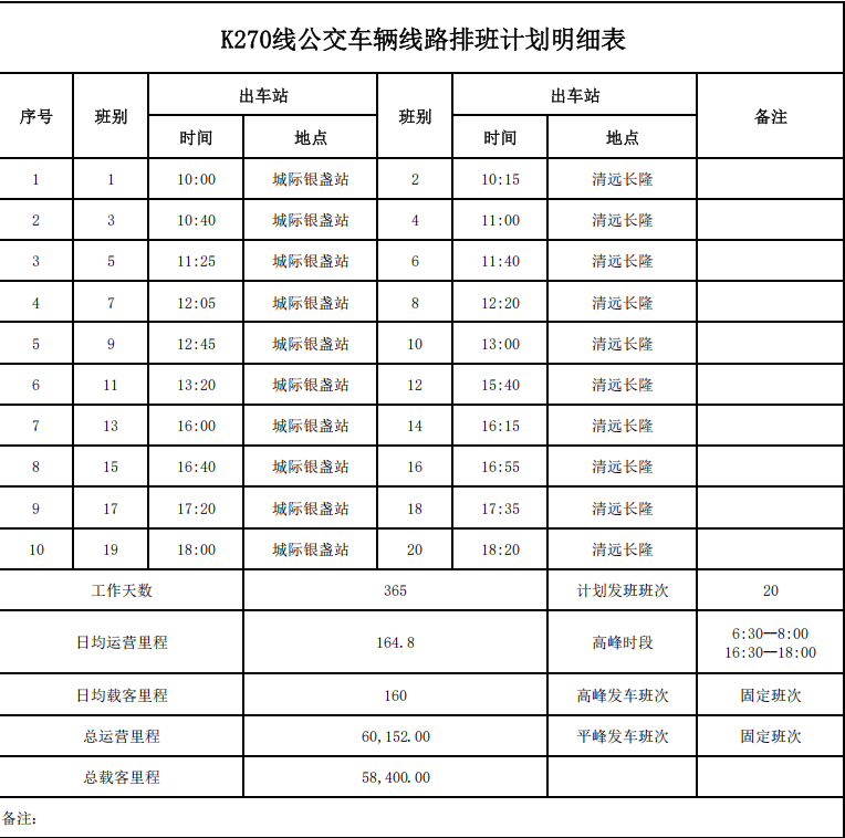 3.K270路增加部分站点,日发班次10班。