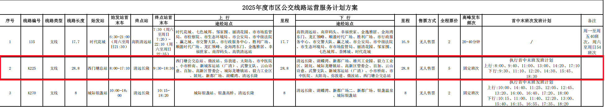 2.K225路增加部分站点。