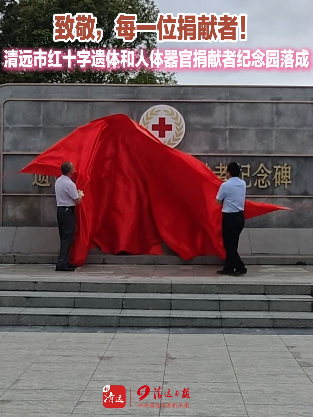 4月23日,清远市红十字遗体和人体器官捐献者纪念园落成暨“生命曙光”2026年清远市人体器官捐献缅怀纪念活动举行。纪念园由清远市孖龙山陵园有限公司无偿提供850平方米建设场地,中山大学附属第一医院给予资金支持,与市红十字会合作建成,是清远首个集缅怀纪念、文化传播与生命教育为一体的公益性人文地标。