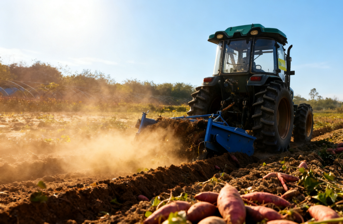 起垄机正采收伦洲蜜薯。