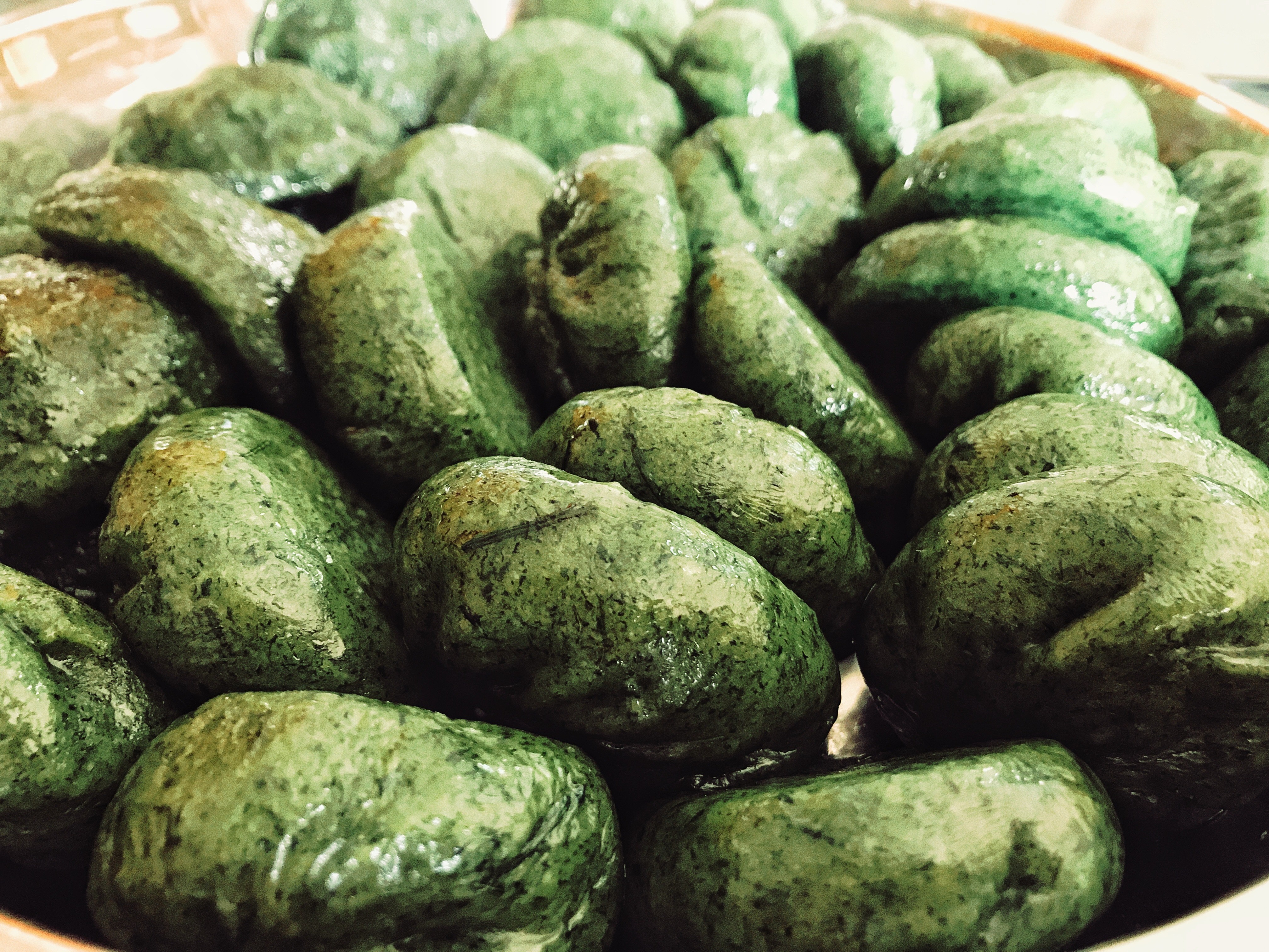 清远清明家家户户必做的点心。鲜嫩艾草榨汁与糯米粉揉制,包芝麻花生甜馅,蒸后翠绿软糯,带着艾草的清香,是春天独有的味道。