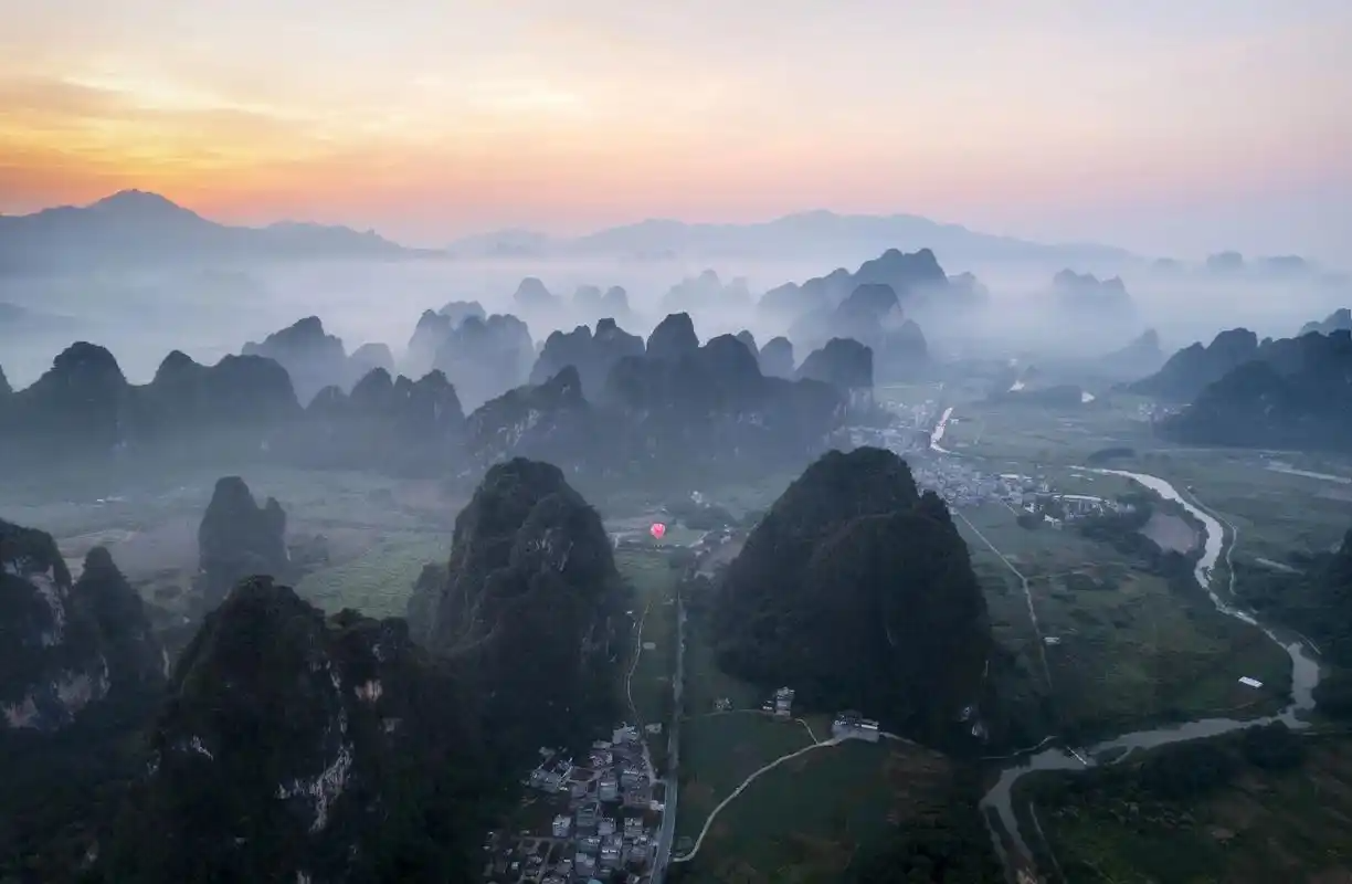 广东最长最密集的喀斯特峰林,清明时节云雾缭绕、田园青翠。连绵的峰林、蜿蜒的溪涧、古朴的农舍,宛如一幅水墨画卷。徒步、骑行、乘竹筏游河,看峰林倒影,感受 “小桂林” 的宁静诗意,踏青拍照超出片。