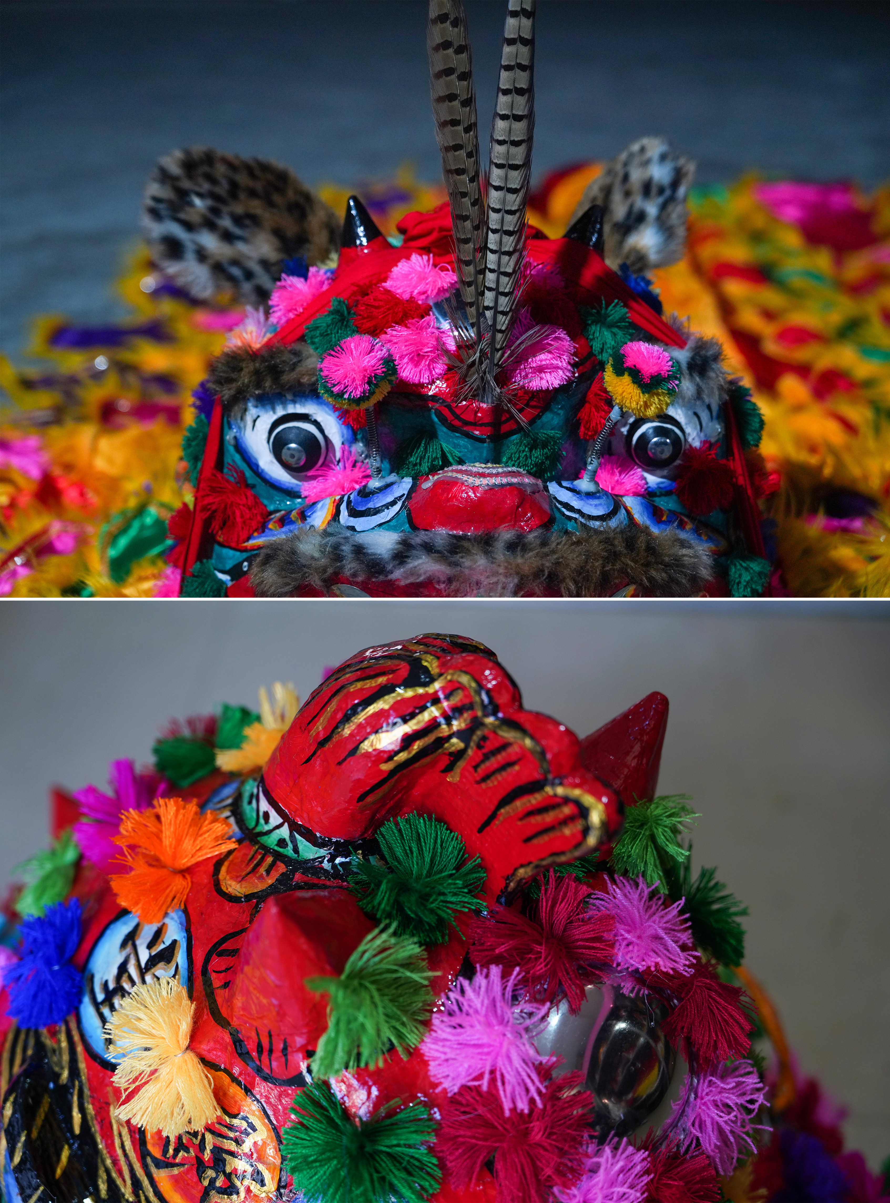猫头狮(上),鸡公狮(下)。清远日报记者 刘淑芳 摄