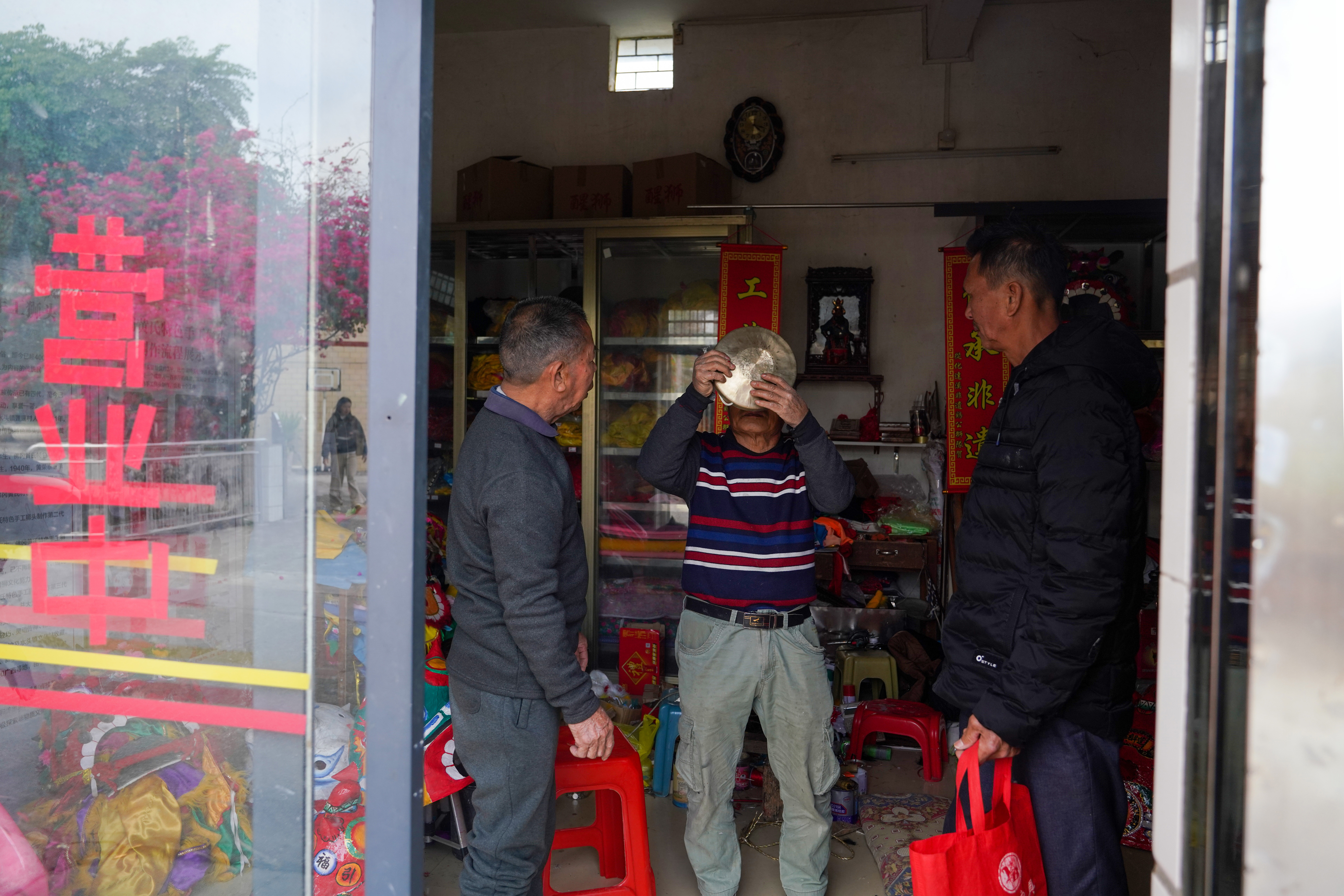 年前是黄国平的狮头工坊最忙的时候。这个月,他已经卖了十几个狮头。“大多是一个家族或者一个村集体添置的,春节要舞狮,家家户户迎狮头,这是佛冈四百多年的老规矩。”