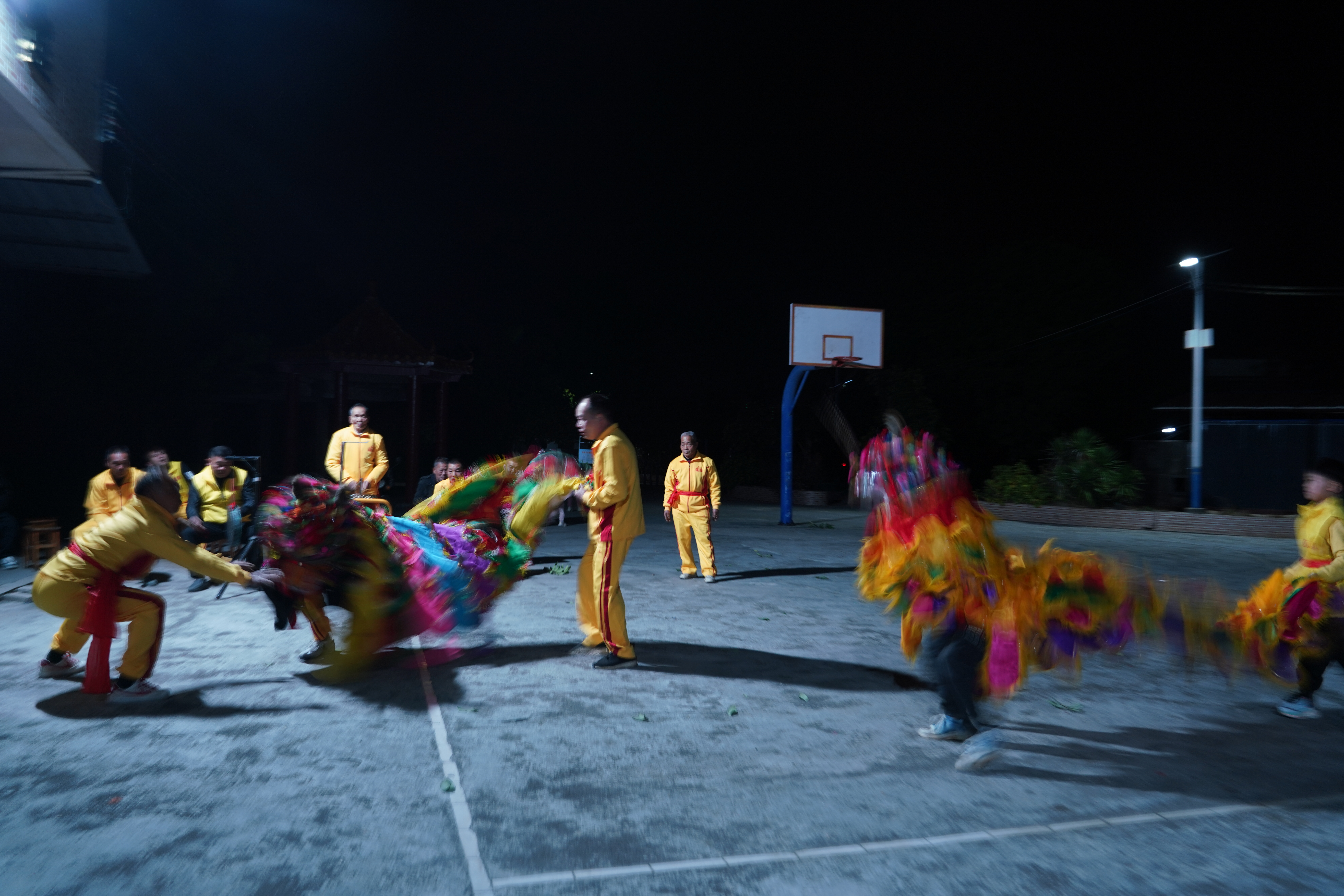 狮头扎完了,晚上8时,村里的鼓点响起来,黄国平又准时出现在村里的文化室。