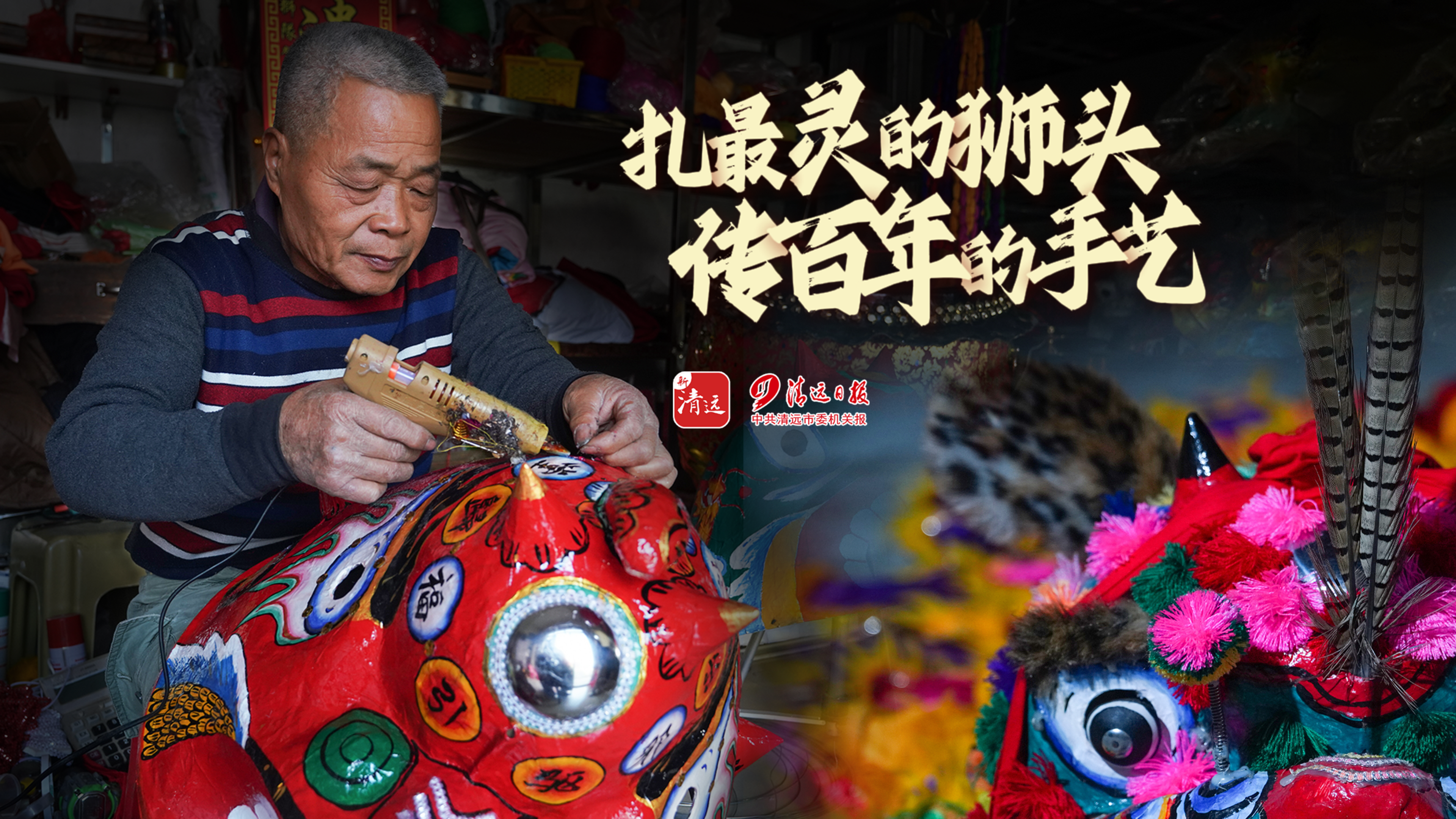 清晨7时,佛冈县水头镇,69岁的黄国平拉开工作室的铁门。门口那株三角梅开得正艳。这是2026年2月11日,农历乙巳年的腊月二十五。他要赶制一个姓郑的村落订的鸡公狮,第二天一早交货。黄国平熟练地拿起胶枪,细心地给狮头贴上亮片装饰,开始了这日复一日的活计。