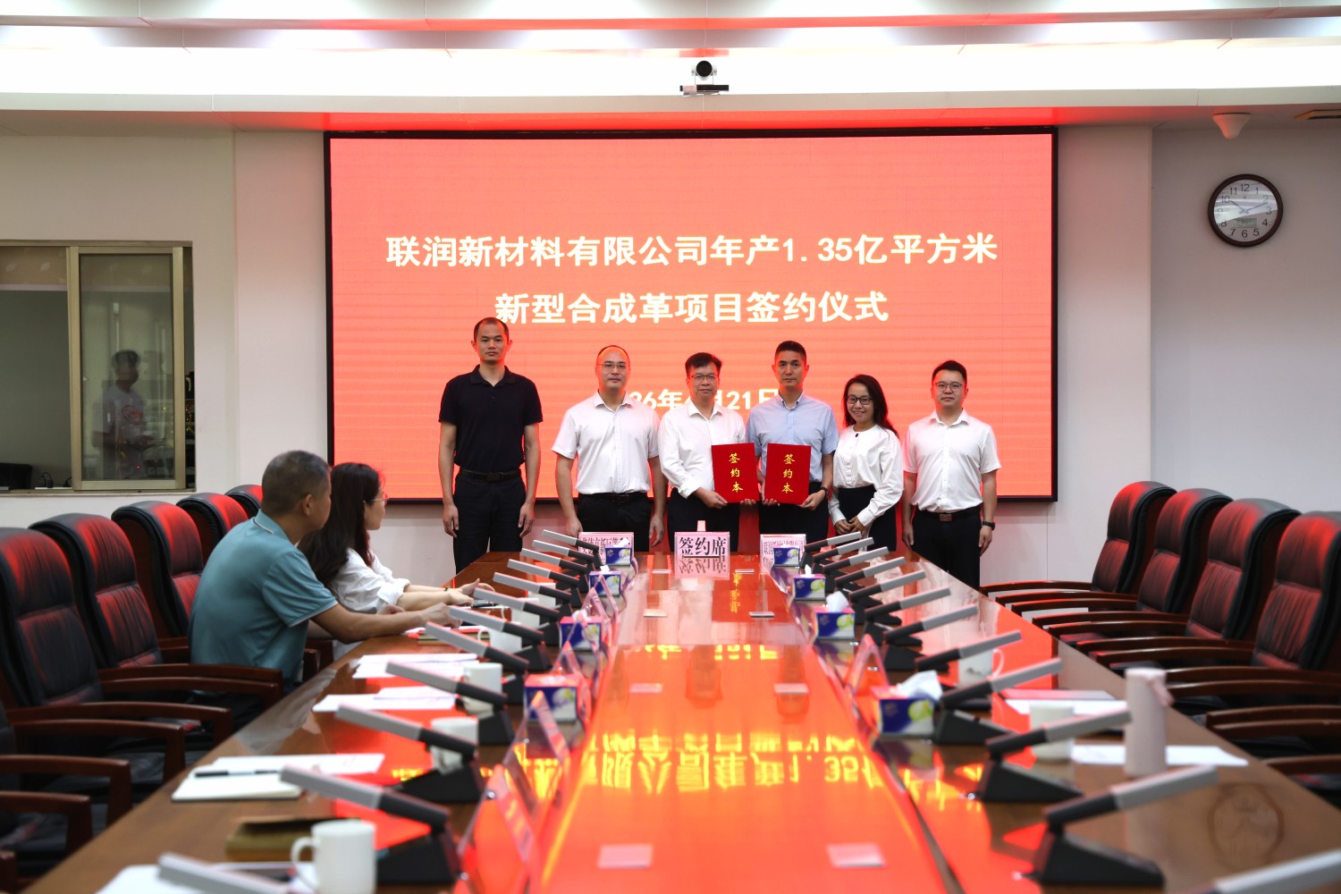 4月21日上午,联润新材料公司“年产1.35亿平方米新型合成革项目”签约仪式在广东省英德市举行。该项目选址英德高新区,总投资4亿元,全面达产后预计年产值约10亿元,为英德新材料产业注入新动能。
