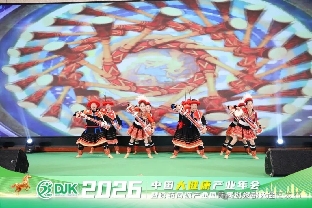 在年会晚宴的文化展示环节,连南国家级非物质文化遗产——瑶族长鼓舞精彩亮相。激昂的鼓点、矫健的舞姿、绚丽的民族服饰,瞬间吸引了全场目光。这一表演不仅为产业盛会注入了浓郁的民族文化风情,更向全国健康产业界的精英们生动展现了连南深厚的历史底蕴和蓬勃的时代活力,成为推介连南“文化+康养”融合发展的生动名片,赢得了现场阵阵掌声。