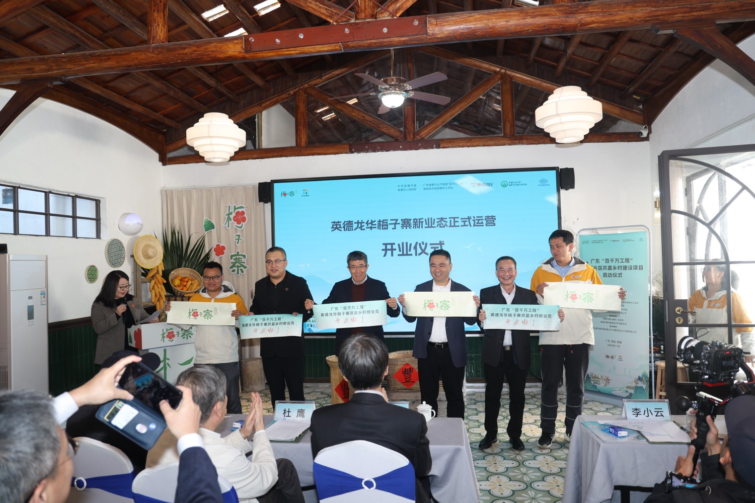在前期试点基础上,现场启动了梅子寨新业态运营开业仪式和广东省英德市共富乡村建设试点项目,继续推进第二阶段探索。广东省“百千万工程”指挥部办公室、清远市委、英德市委、中国农业大学、腾讯公司、中远海运特运公司等有关单位负责人和乡村CEO代表共同见证项目启动。
