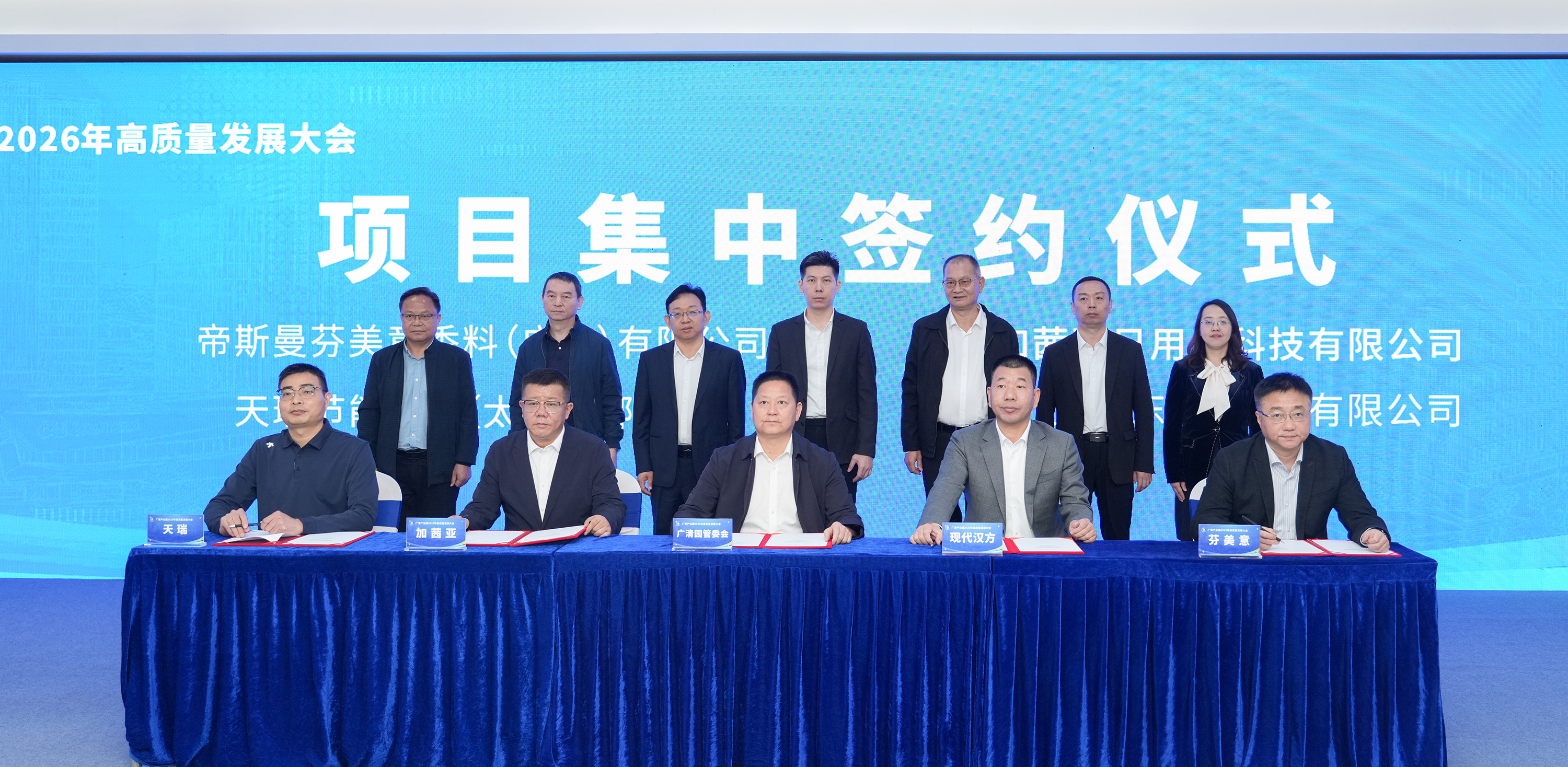 紧扣广东省“制造业与服务业协同发展”部署要求,广清产业园全力推动制造业与现代服务业深度融合,构建产业发展新生态。大会现场举行2026年第一季度重点项目集中签约仪式,帝斯曼芬美意香料、加茜亚二期、现代汉方二期、天瑞节能科技4个优质项目签约入园,计划总投资超9亿元,涵盖智能制造、美妆科技、节能技术等多个领域;其中帝斯曼芬美意是全球领先的香精香料制造商,为外资瑞士企业,计划投资1300万瑞士法郎。今年以来,园区已签约项目计划总投资累计约18亿元,为产业升级与经济增长再添新引擎。
