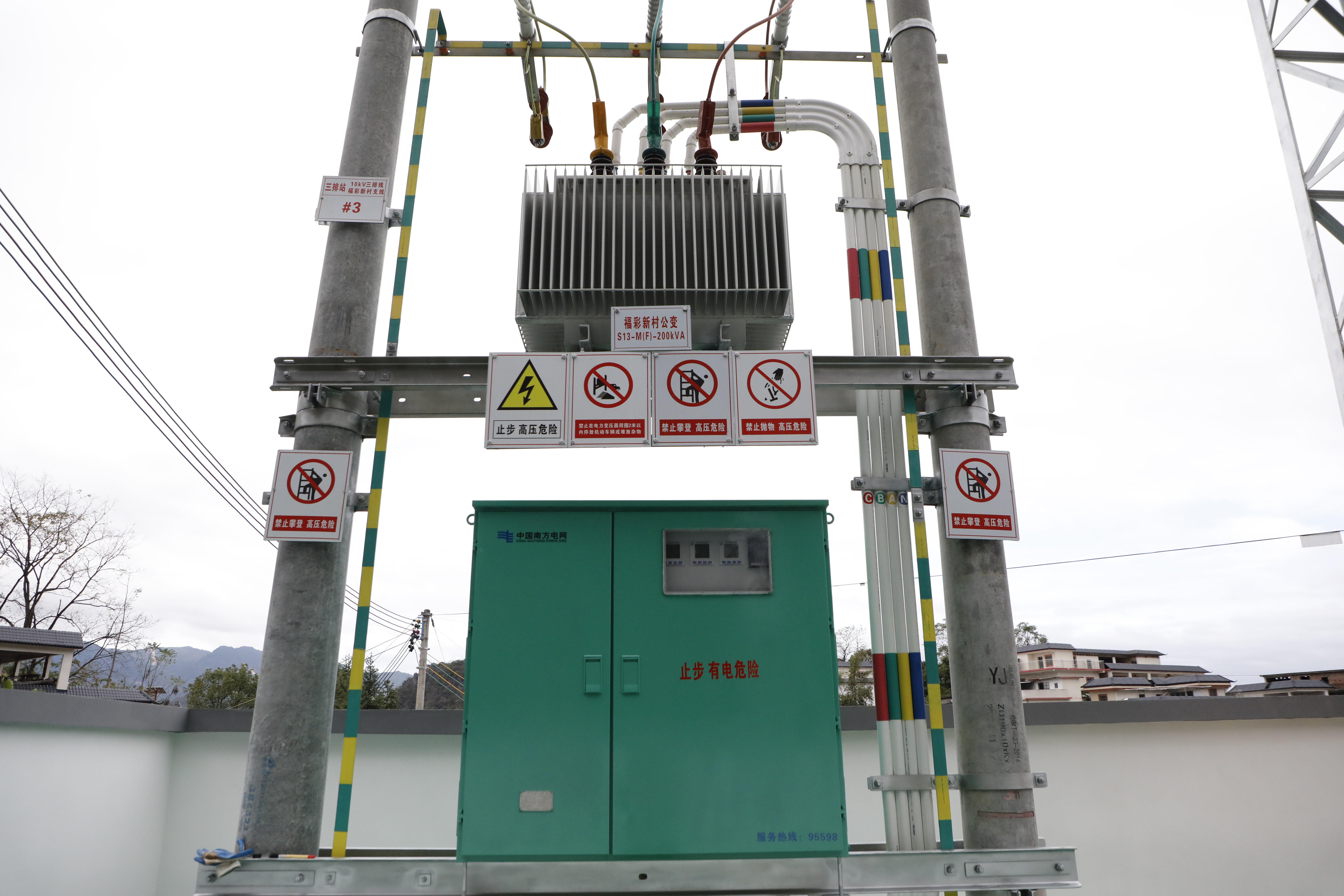 连南供电局35千伏三排变电站10千伏三排线福彩新村公变改造工程位于连南瑶族自治县三排镇三排村下辖的福彩移民新村,该村是县域“百千万工程”典型培育村,邻近千年瑶寨等特色旅游景区。据介绍,该工程项目总投资约69万元,于2024年3月投产,项目投产后,该区域的配变总容量、户均容量增幅达50%,有效满足负荷增长接入需求,供电半径同比减少44.12%,低电压用户全数清零。