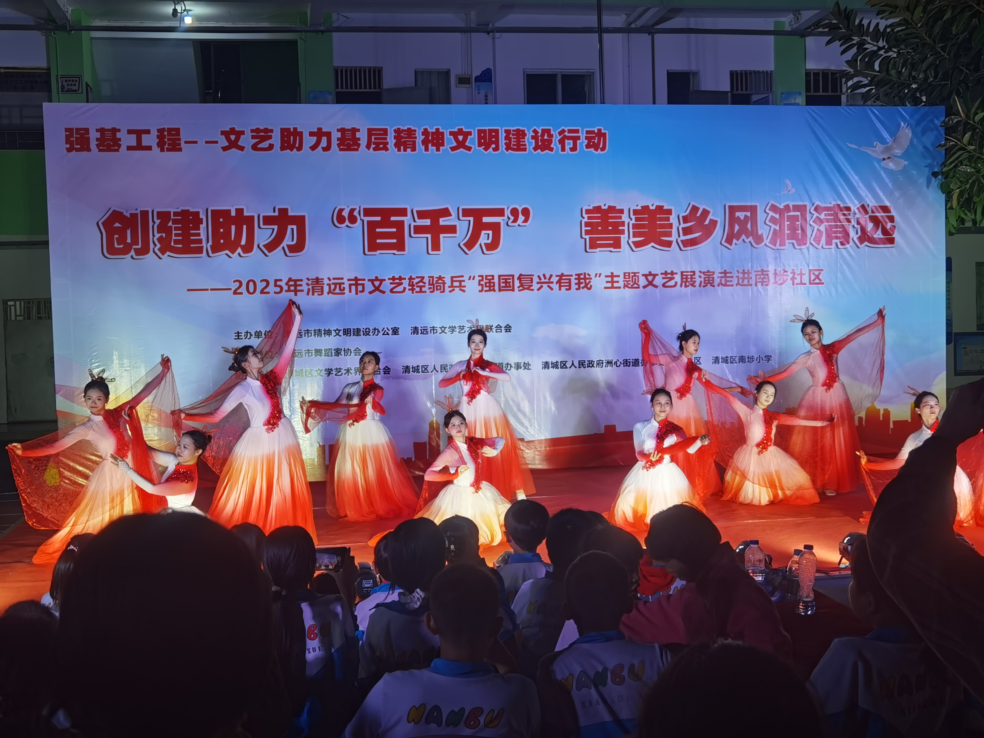 近日,2025年清远市文艺轻骑兵“强国复兴有我”文艺展演来到清城区洲心街道南埗社区,将丰富多样的高质量文艺演出送到社区居民家门口。