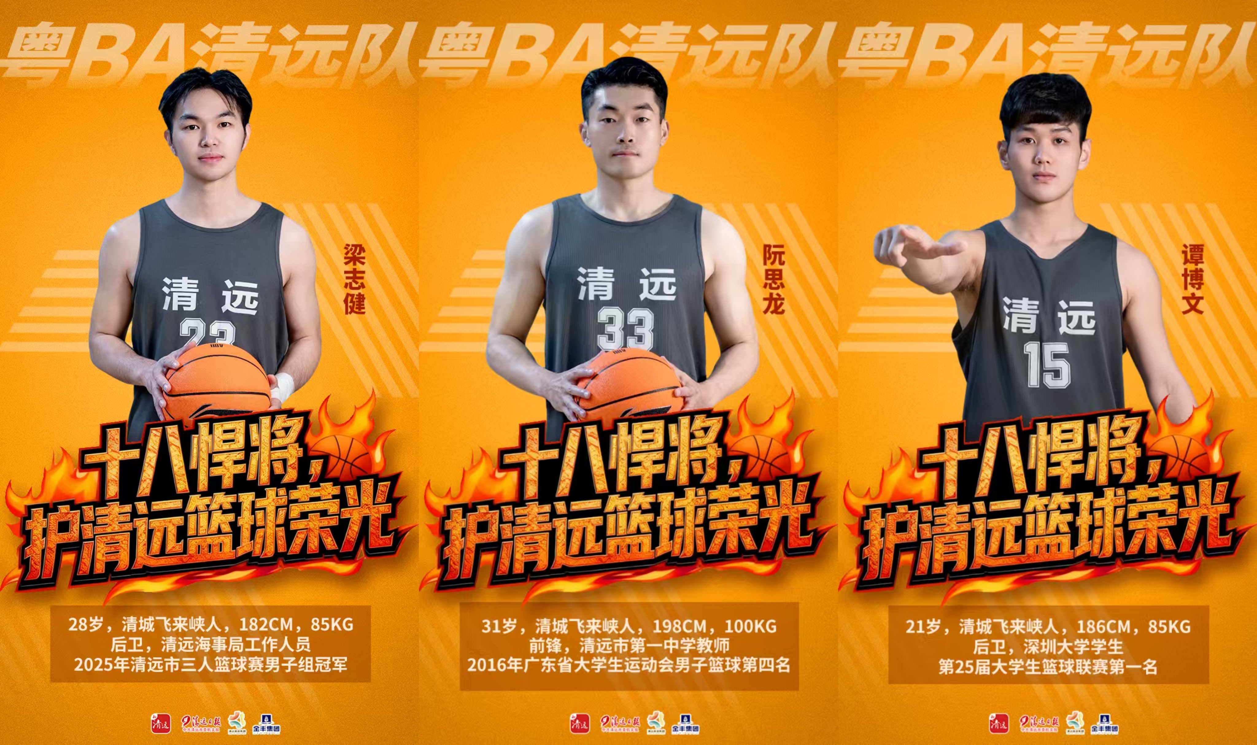 今年粤BA常规赛开打前夕,清远队公布的18人大名单中,一个细节引发广泛关注:23号梁志健、33号阮思龙、15号谭博文三名主力球员,均来自清城区飞来峡镇。
