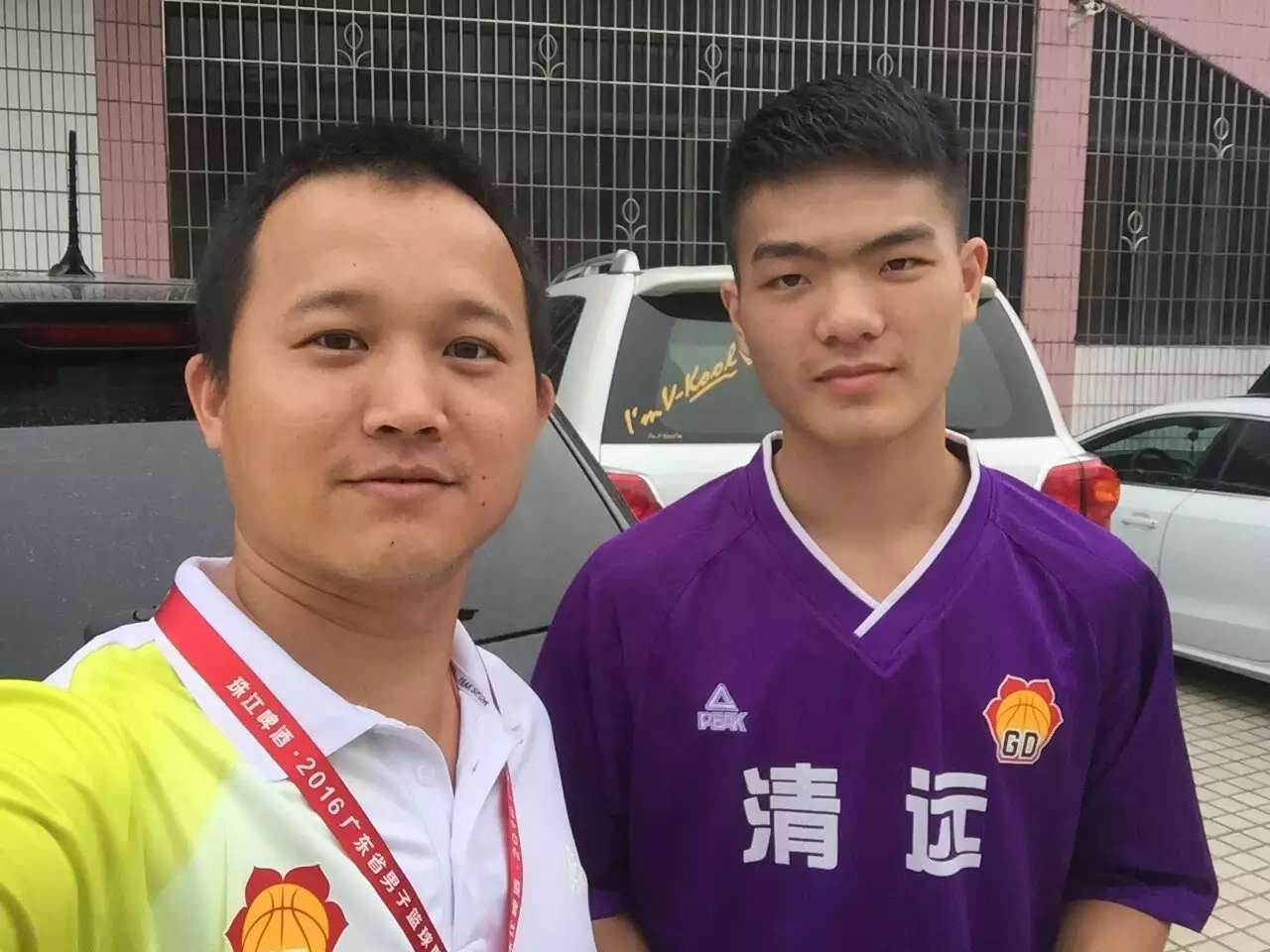 林荣昌和首次加入清远队的黎伊扬合影,2016年黎伊扬一战成名。(资料图)