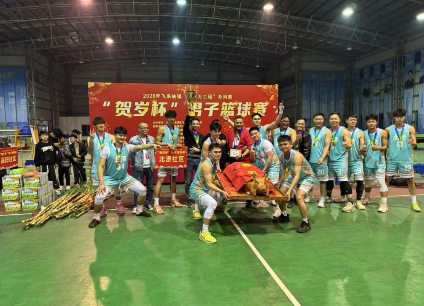除了完善的场地设施,层层搭建的赛事平台,更让篮球运动在基层落地生根、开花结果。以村级赛事为例,飞来峡镇村BA贺岁杯已成功举办多届,成为当地群众春节期间最期待的文化体育活动。2026年举办的贺岁杯赛事,参赛队伍更是创下历史新高。