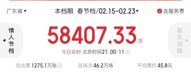 广东省春节档票房超5.8亿元,时隔五年重回春节档“第一票仓”,档期内观影人次超1275万,放映场次超46万,均居全国首位。