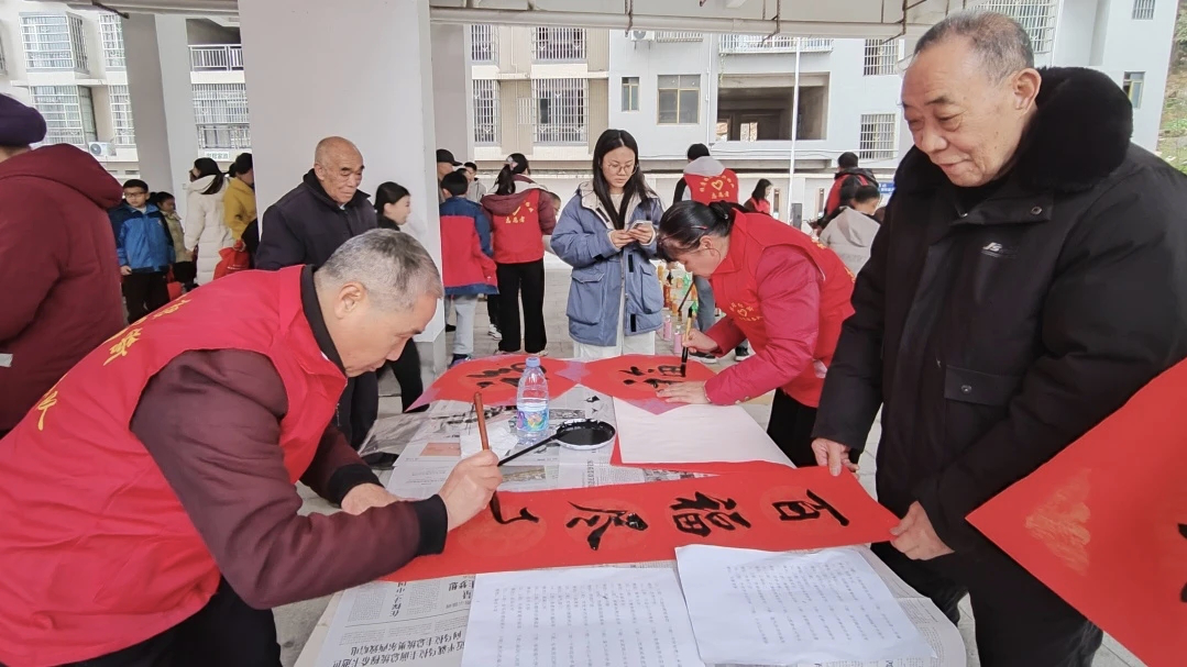 依托社区党群服务中心和小区阵地,组织有书法特长的老干部志愿者走进凯旋门广场、金御华府等小区,开展“迎新春·写春联·送祝福”活动。活动现场气氛热烈,群众纷纷前来领取春联和“福”字。志愿者挥毫泼墨,一副副寓意吉祥的春联传递着新春祝福,不仅弘扬了中华优秀传统文化,也增强了社区凝聚力,推动志愿服务向居民身边延伸,促进邻里互动交流。