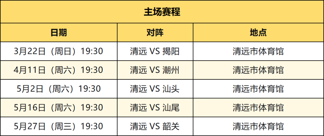 根据赛程安排,首场比赛后,清远队将于3月28日客场挑战惠州队。4月11日,清远队将迎来第二个主场比赛,对手是潮州队。