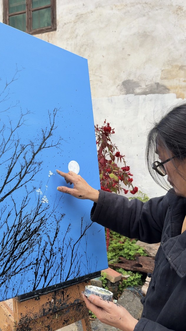 闲暇之余,他还用捡来的枯枝、树皮甚至杂草,创作出一幅幅灵动的画作。“树枝要用有韧性的,半个小时就能画好一幅,复杂的一个小时左右,有时候也会用草作画。”这些取材于自然的艺术,经由他的抖音账号传播后意外“破圈”,多条视频播放量破亿,甚至多次获得了央媒的关注报道。