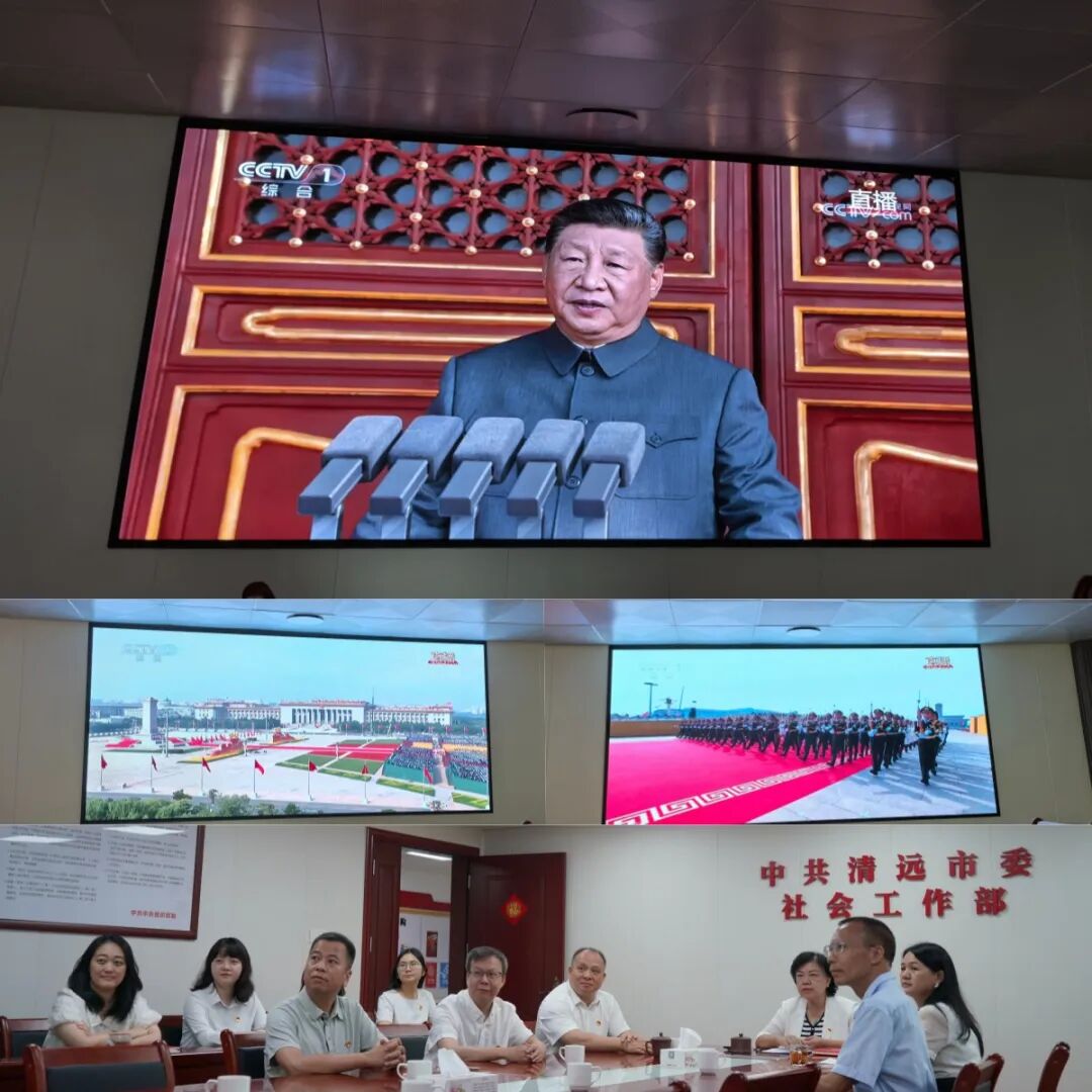 9月3日上午,清远市委社会工作部发动全市社会工作系统党员干部收看纪念中国人民抗日战争暨世界反法西斯战争胜利80周年大会,认真聆听习近平总书记的重要讲话,观看阅兵方阵飒爽英姿,共同见证这庄严神圣、激动人心的时刻。