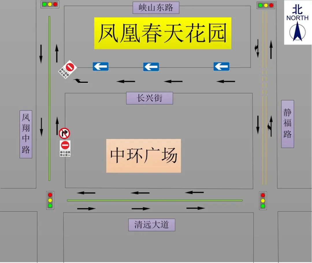 长兴街实施单向交通组织示意图