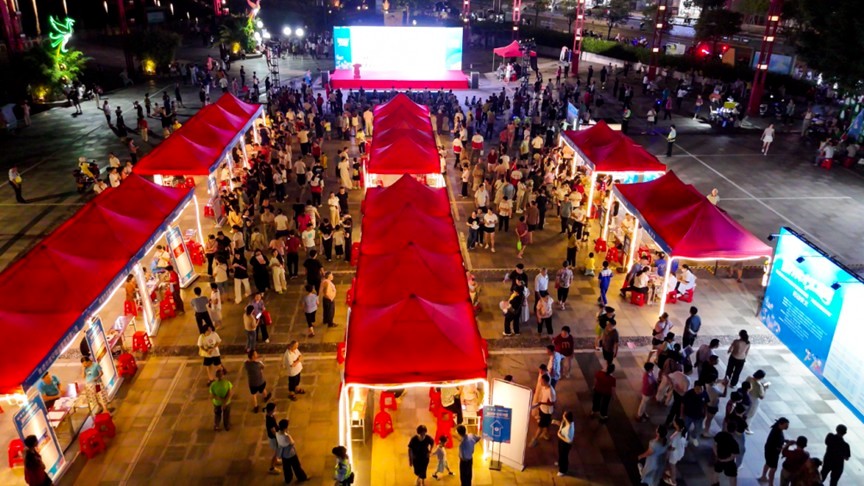 10月10日晚上,英德市举办“百万英才汇南粤”2025年秋季和2026年春季系列招聘活动暨“月桂湖招聘夜市”启动仪式。通讯员供图