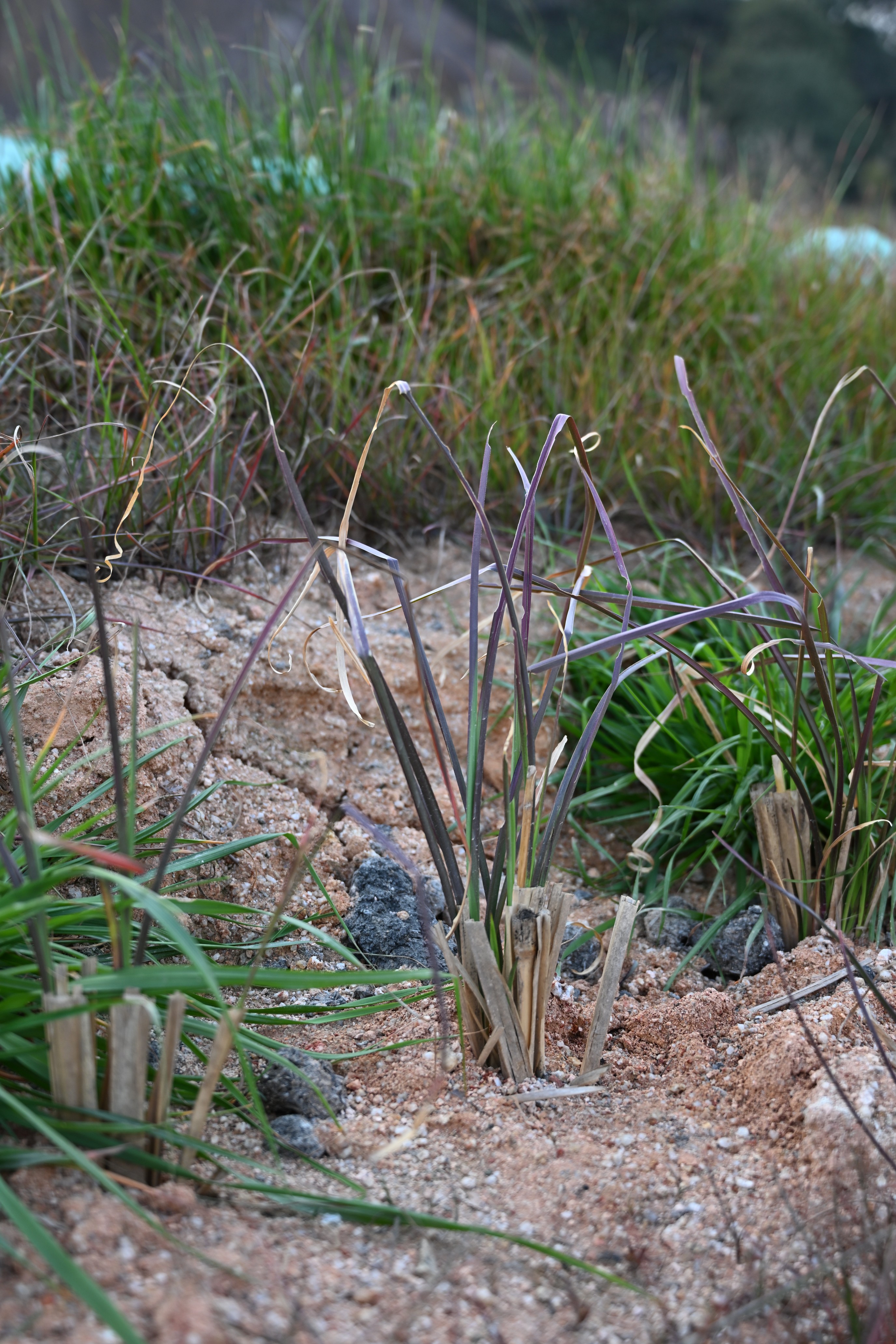 2月10日下午,初春的佛冈县迳头镇社坪村,山风仍带寒意。在一处曾经裸露着褐黄色砂土的山坡上,佛冈县土地开发储备局副局长华锋俯身,轻轻拨开一丛新绿的草叶,向记者展示其下盘根错节的茂盛根系。“这是香根草,我们生态修复的‘先锋军’和‘稳定器’。”他解释道。