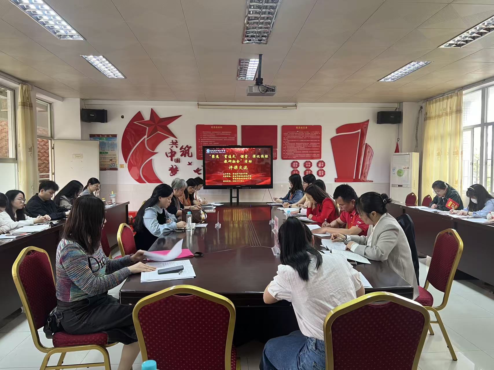 示范课后,参与教师围绕贯通式课堂,进行学科评课。通讯员供图